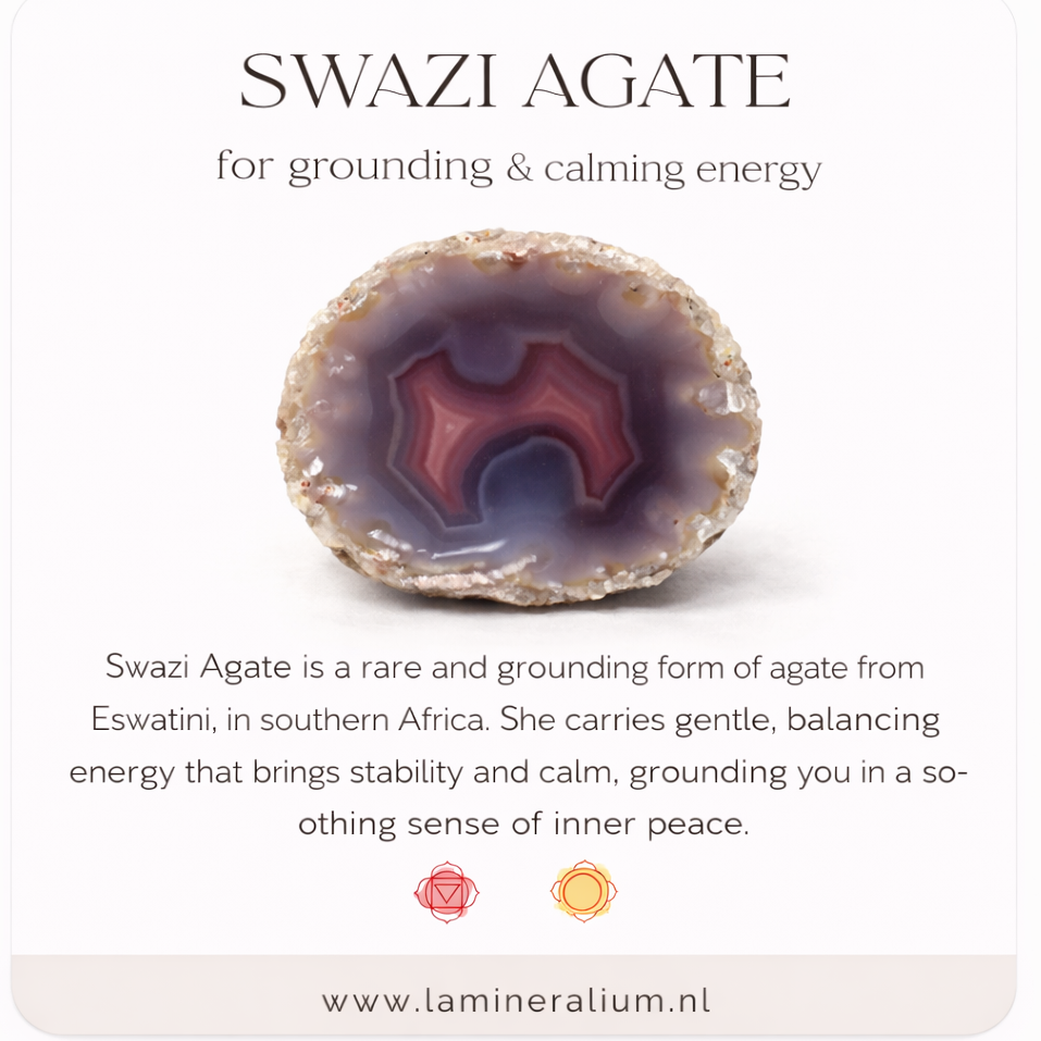 Agaat staat bekend om haar stabiliserende en beschermende energie en ondersteunt innerlijke balans, aarding en een gevoel van veiligheid en vertrouwen.