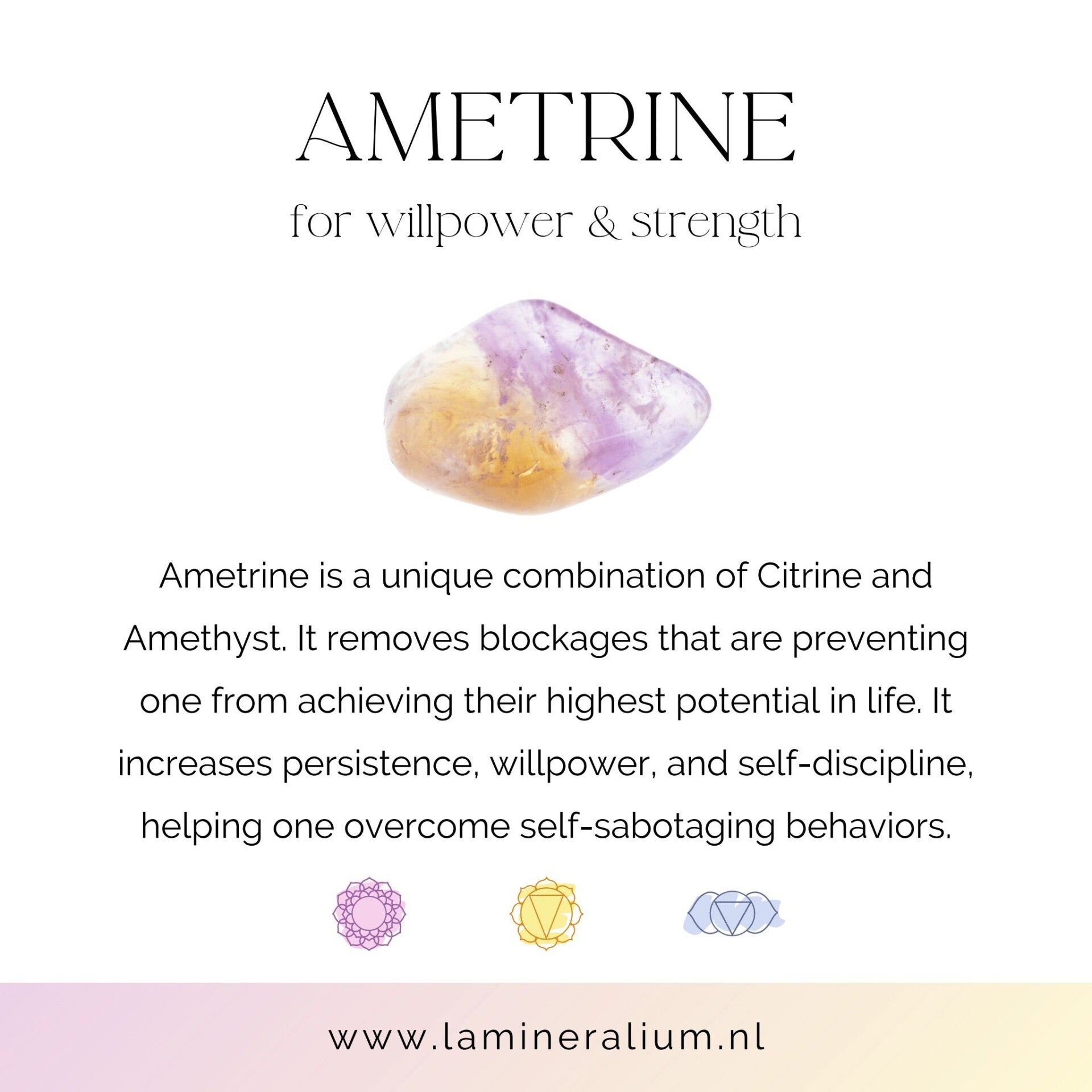 met balans, helderheid en inzicht. De combinatie van amethist en citrien wordt gezien als een samenspel tussen rust en energie.