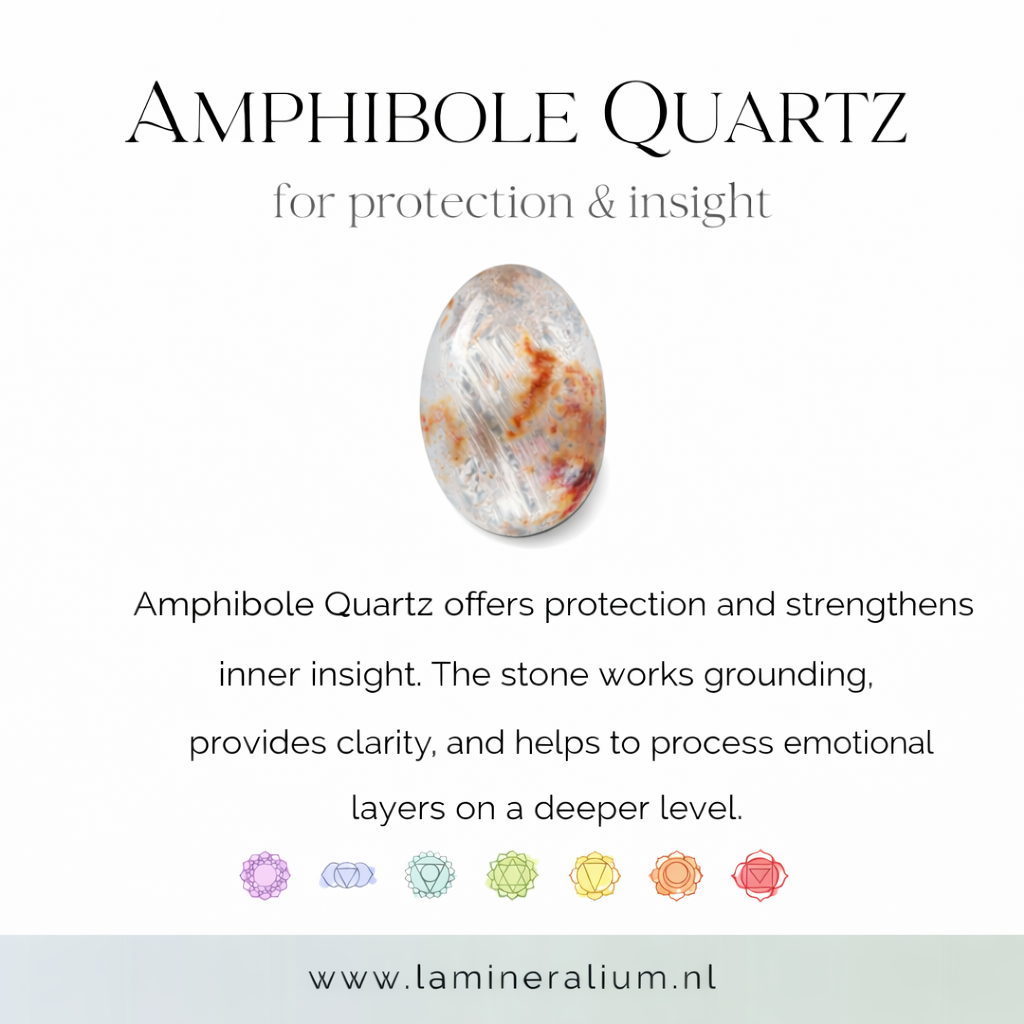 Binnen de wereld van edelstenen wordt amfibool kwarts vaak geassocieerd met inzicht, bescherming en spiritueel bewustzijn.