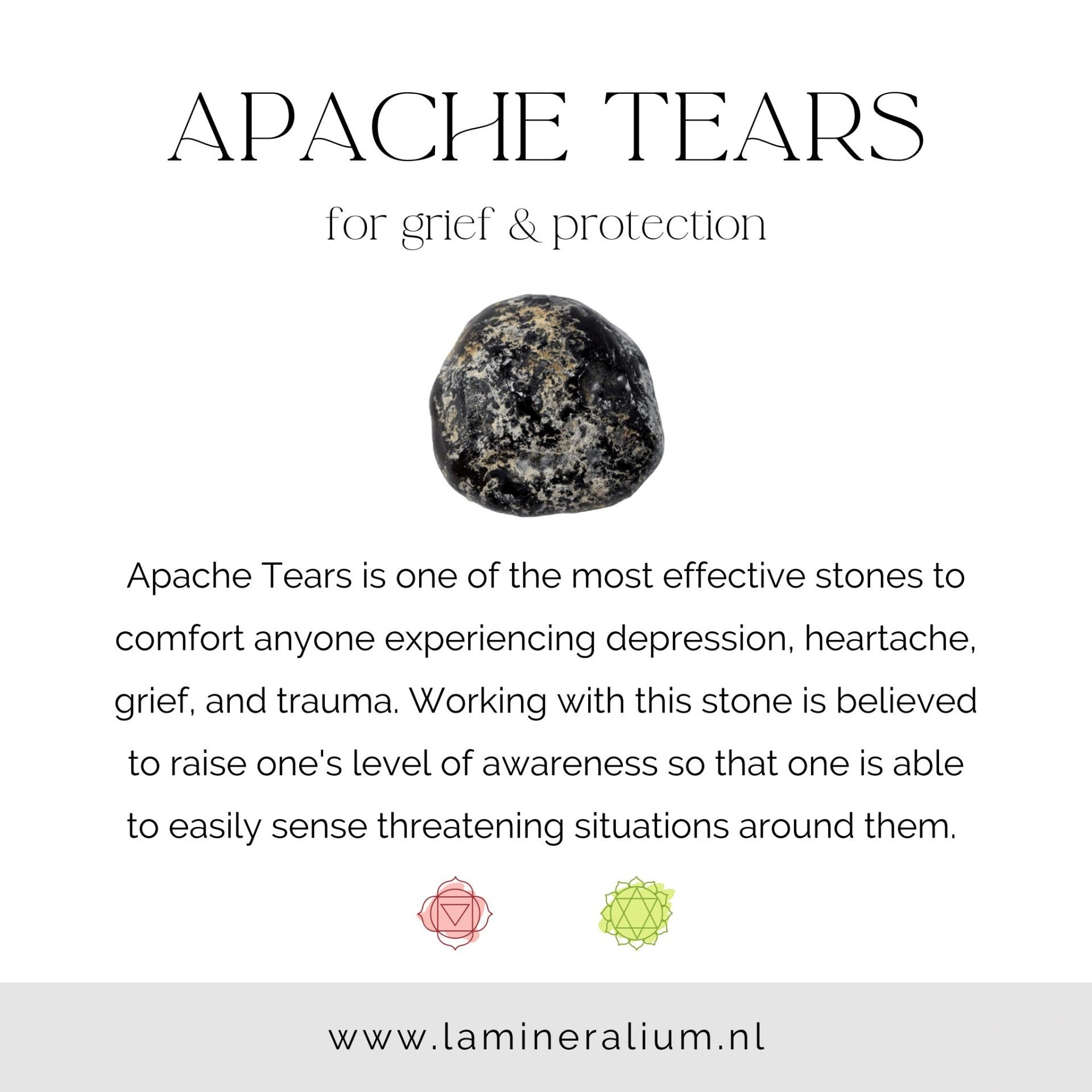 Binnen de wereld van edelstenen wordt apache traan vaak geassocieerd met troost, bescherming en het loslaten van emoties.