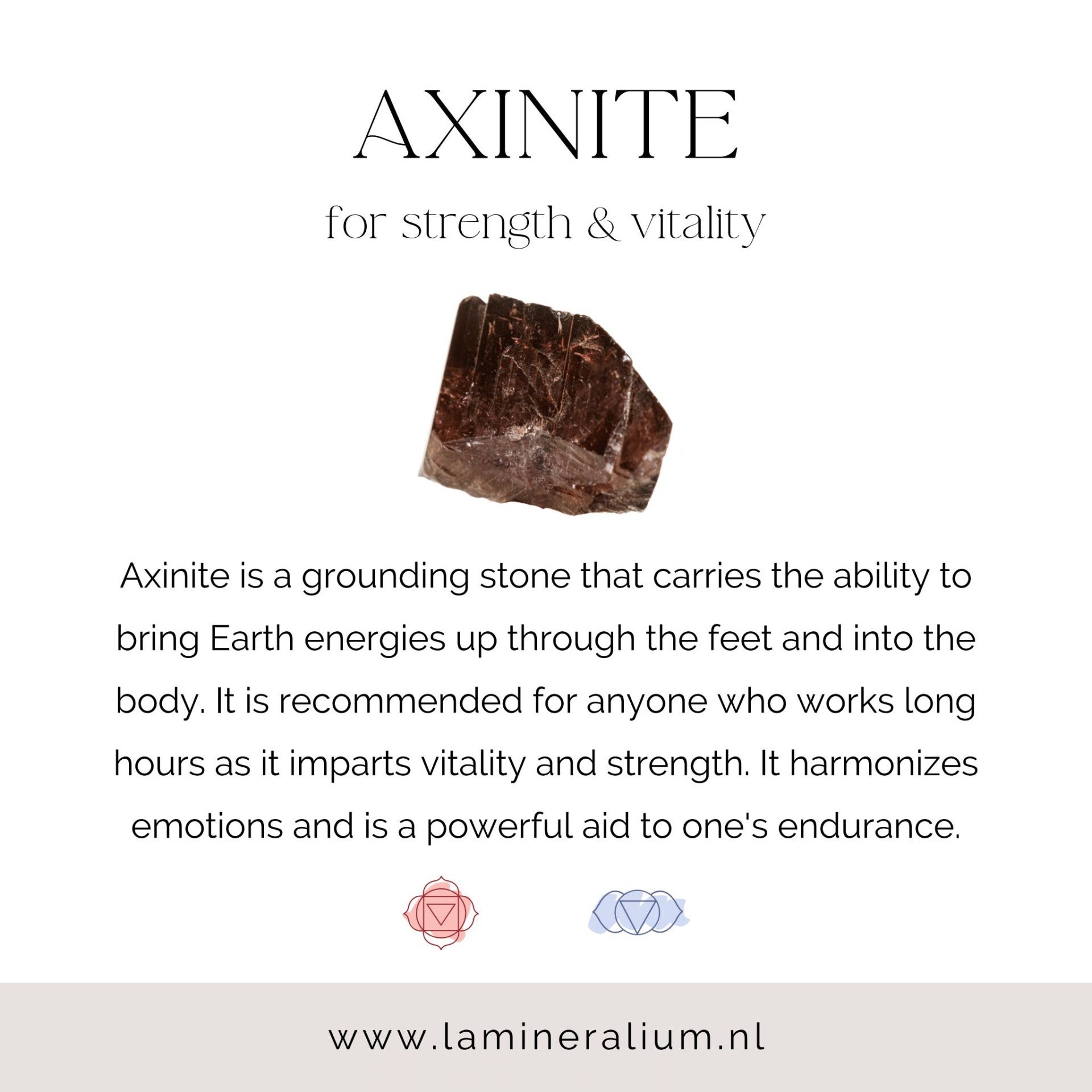 Binnen spirituele tradities wordt axiniet gezien als een steen die helpt om stabiliteit en inzicht te versterken. Zij nodigt uit tot vertrouwen, balans en het volgen van je eigen pad.