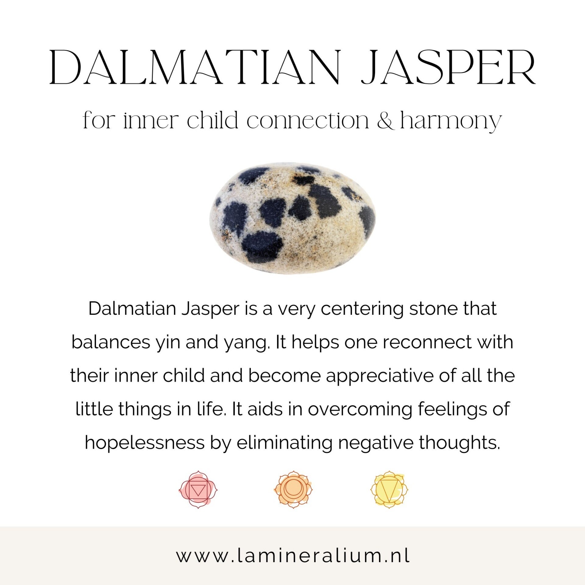 Hierdoor kan Dalmatier Jaspis helpen om negatieve gedachtenpatronen te doorbreken en ruimte te maken voor een meer ontspannen houding.