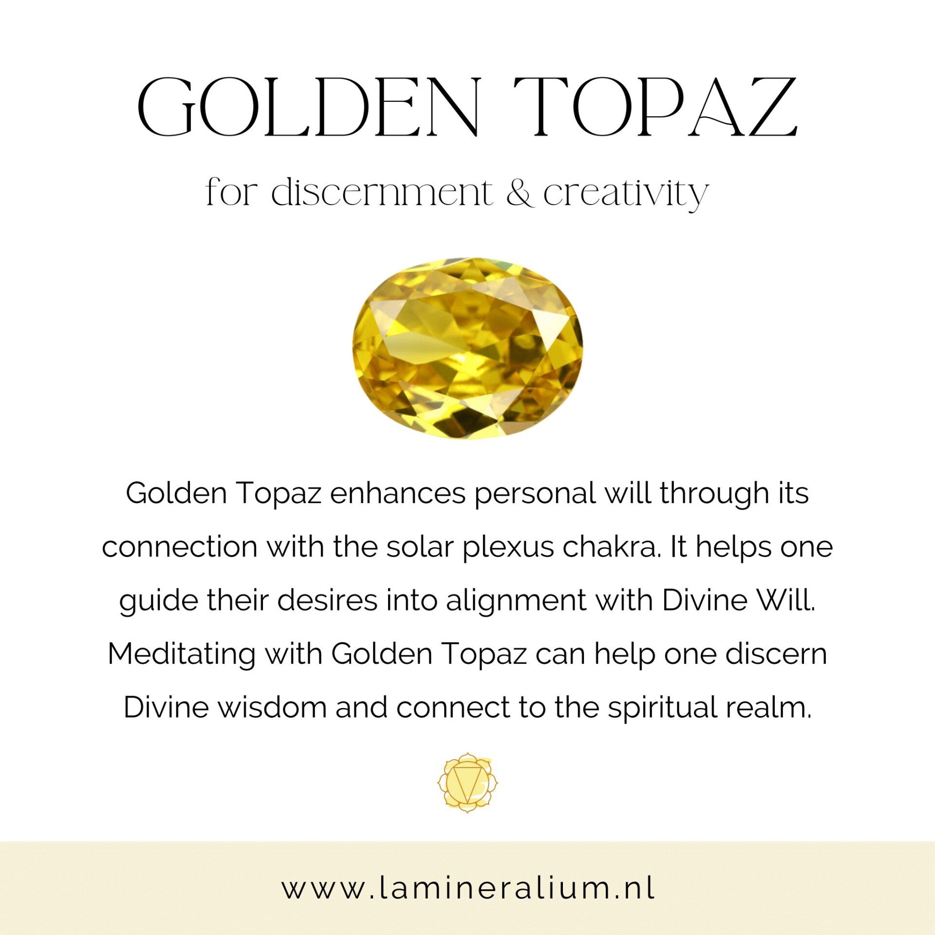 Goud topaas wordt meestal gekoppeld aan het zonnevlechtchakra.