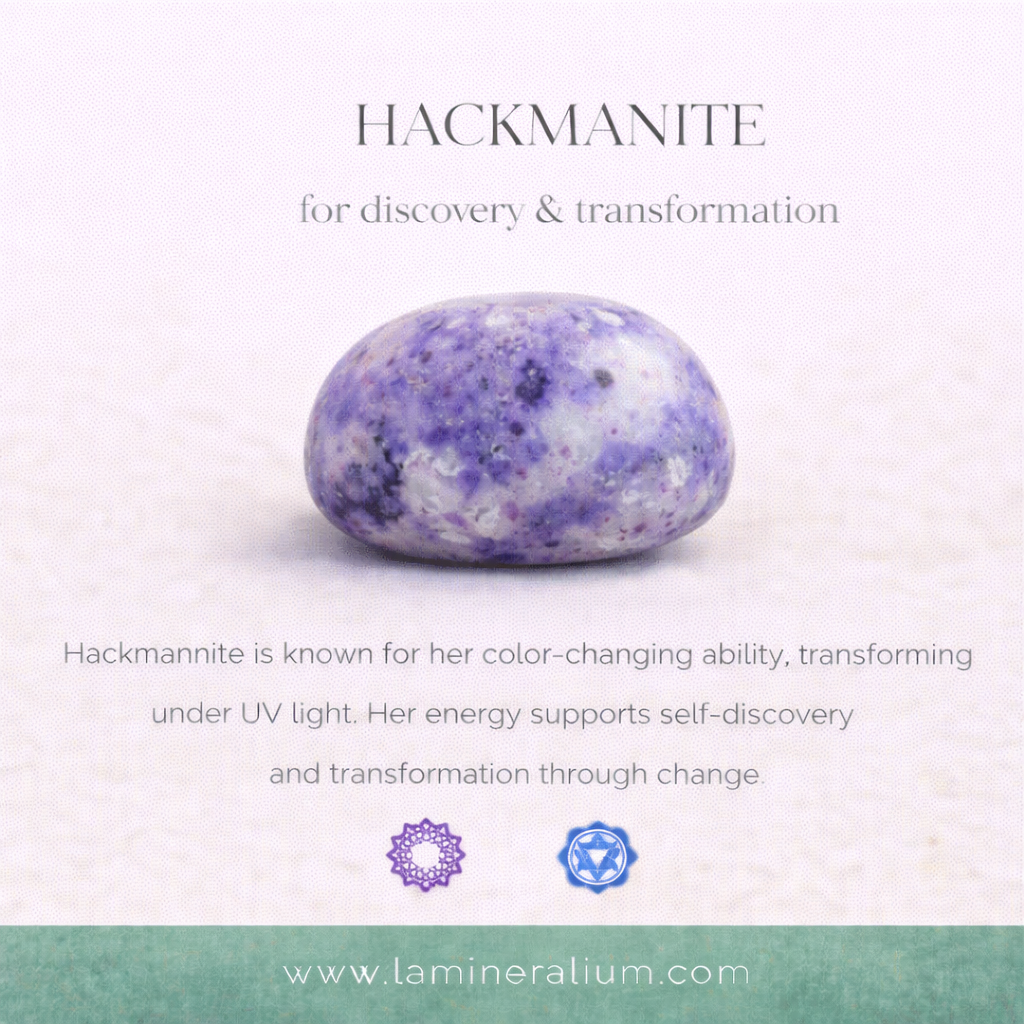 Binnen de wereld van mineralen wordt Hackmaniet vaak geassocieerd met bewustwording, innerlijke transformatie en het ontdekken van verborgen lagen in jezelf. Haar energie wordt door velen ervaren