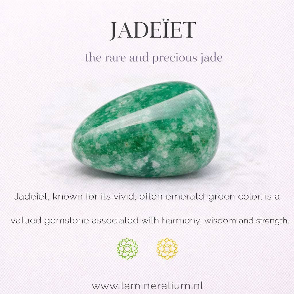 Door haar intense kleuren en bijzondere symboliek wordt jadeïet vaak gezien als een steen die balans en innerlijke stabiliteit symboliseert.
