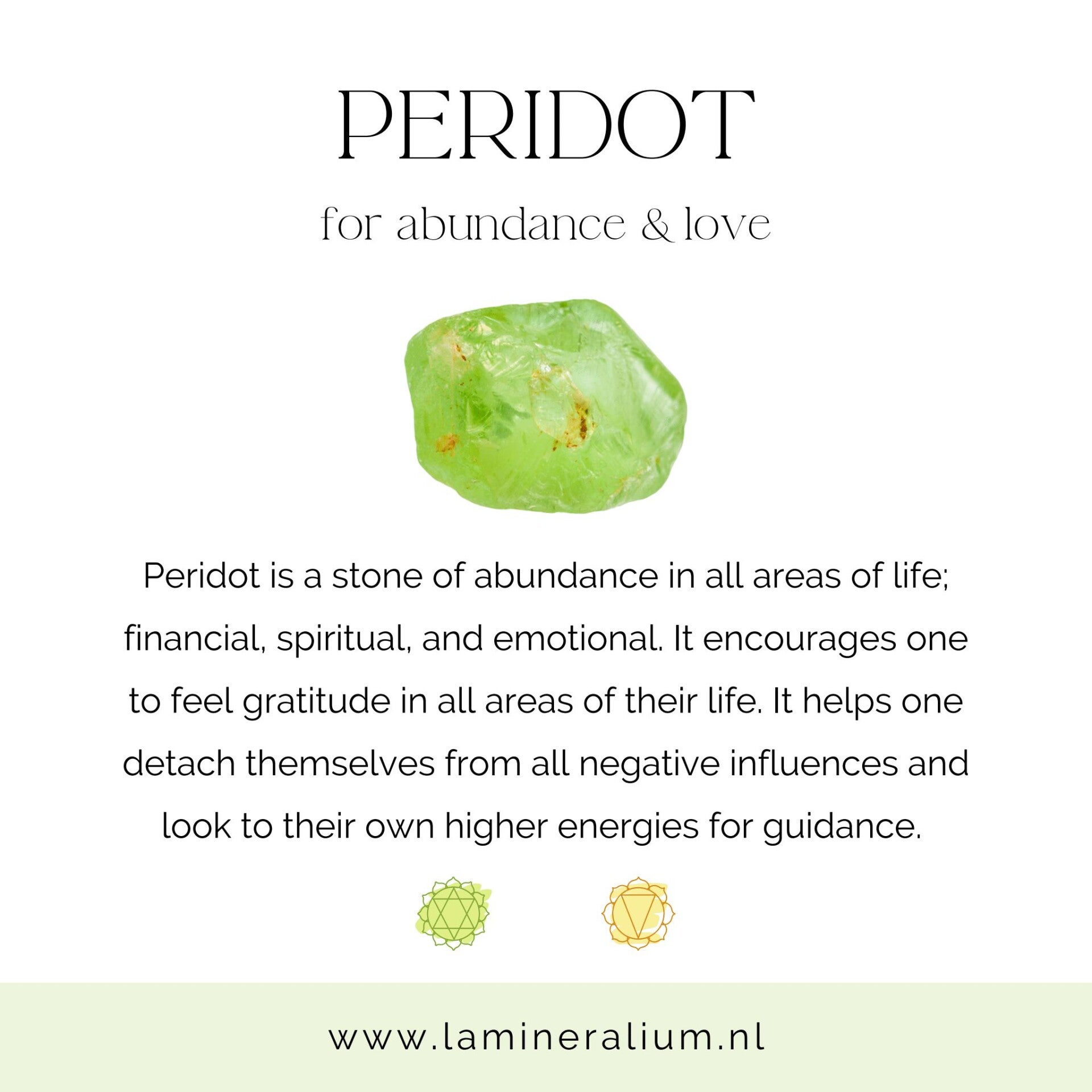 Peridoot wordt meestal gekoppeld aan het hartchakra.