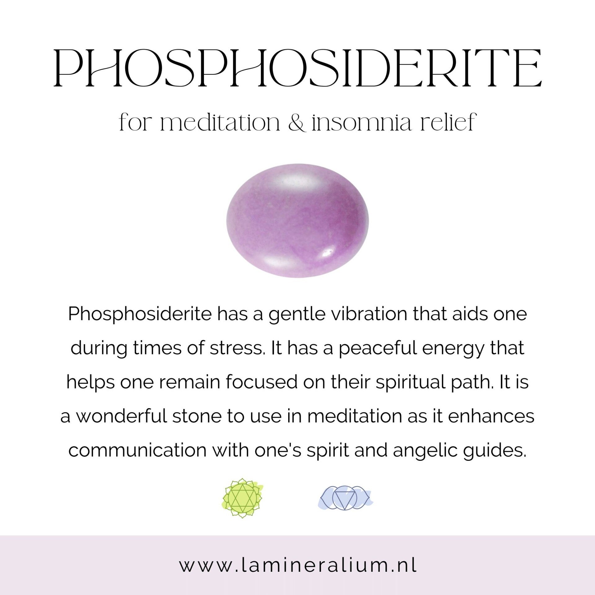 Binnen de wereld van edelstenen wordt phosphosideriet vaak geassocieerd met rust, inzicht en spirituele balans. Haar energie