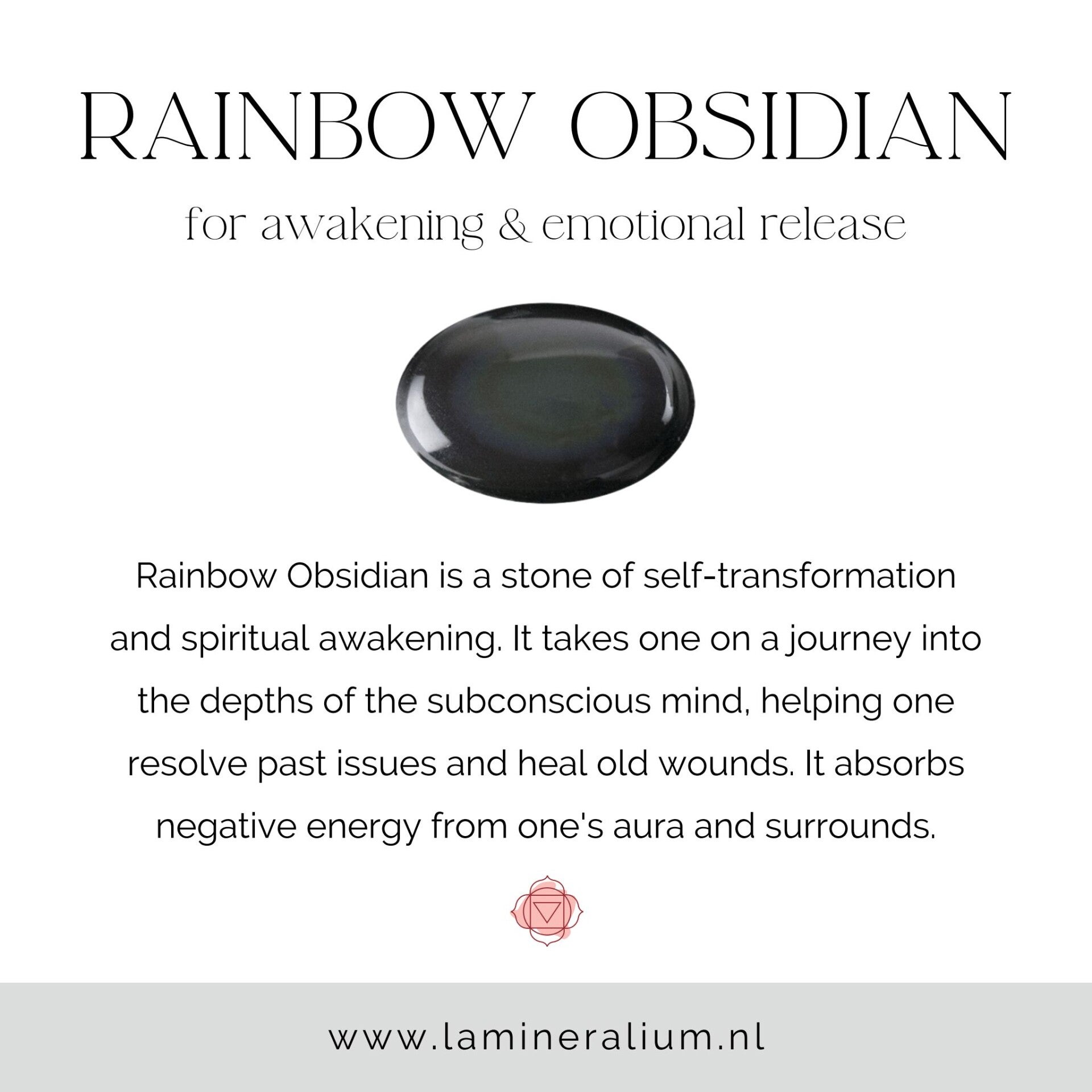 Binnen de wereld van edelstenen wordt regenboog obsidiaan vaak geassocieerd met bescherming, inzicht en innerlijke balans.