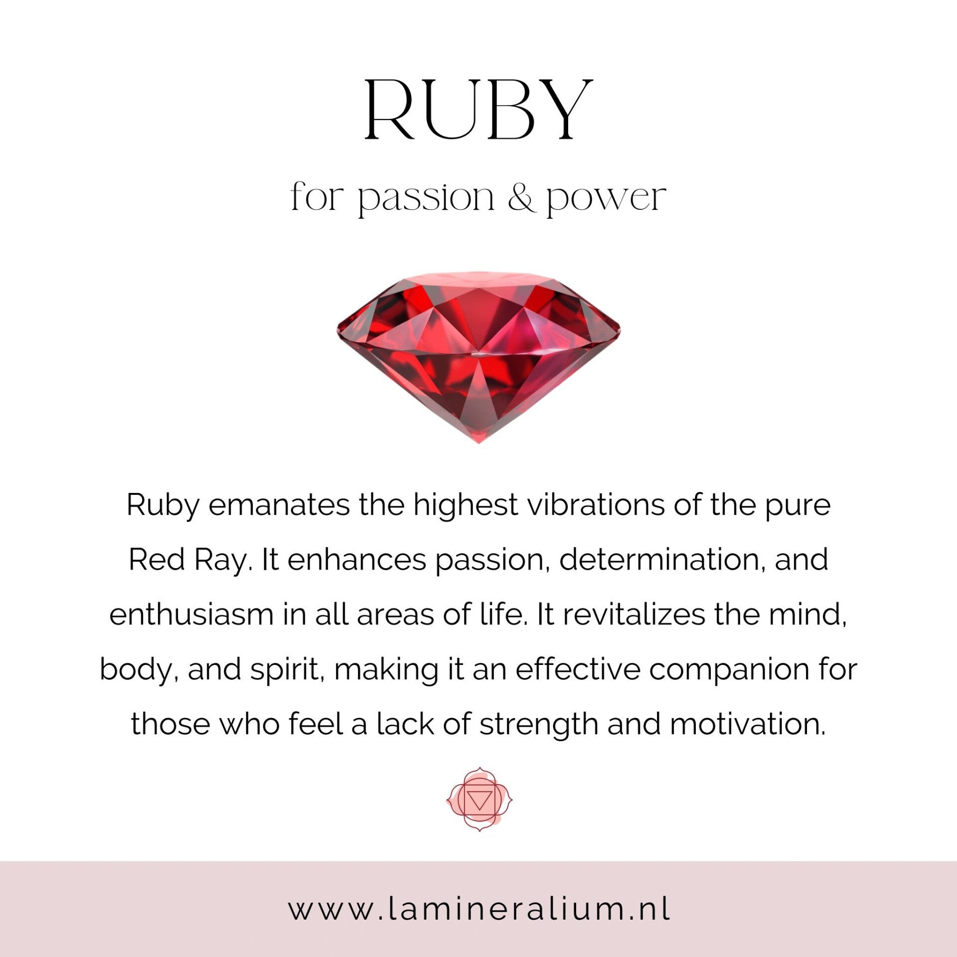 Robijn wordt meestal gekoppeld aan het wortelchakra.