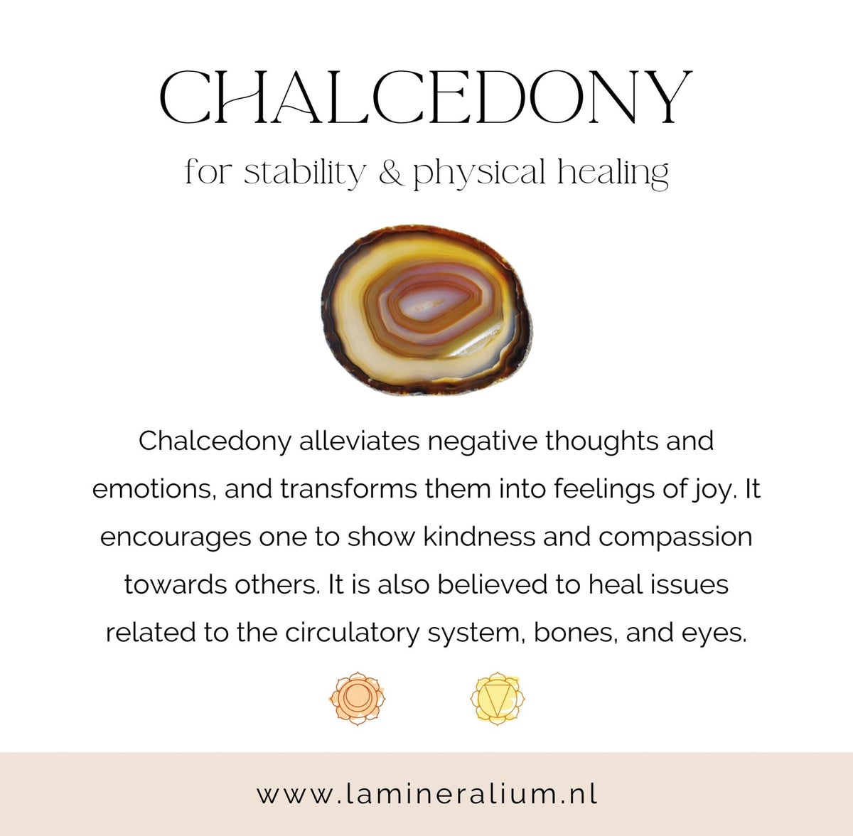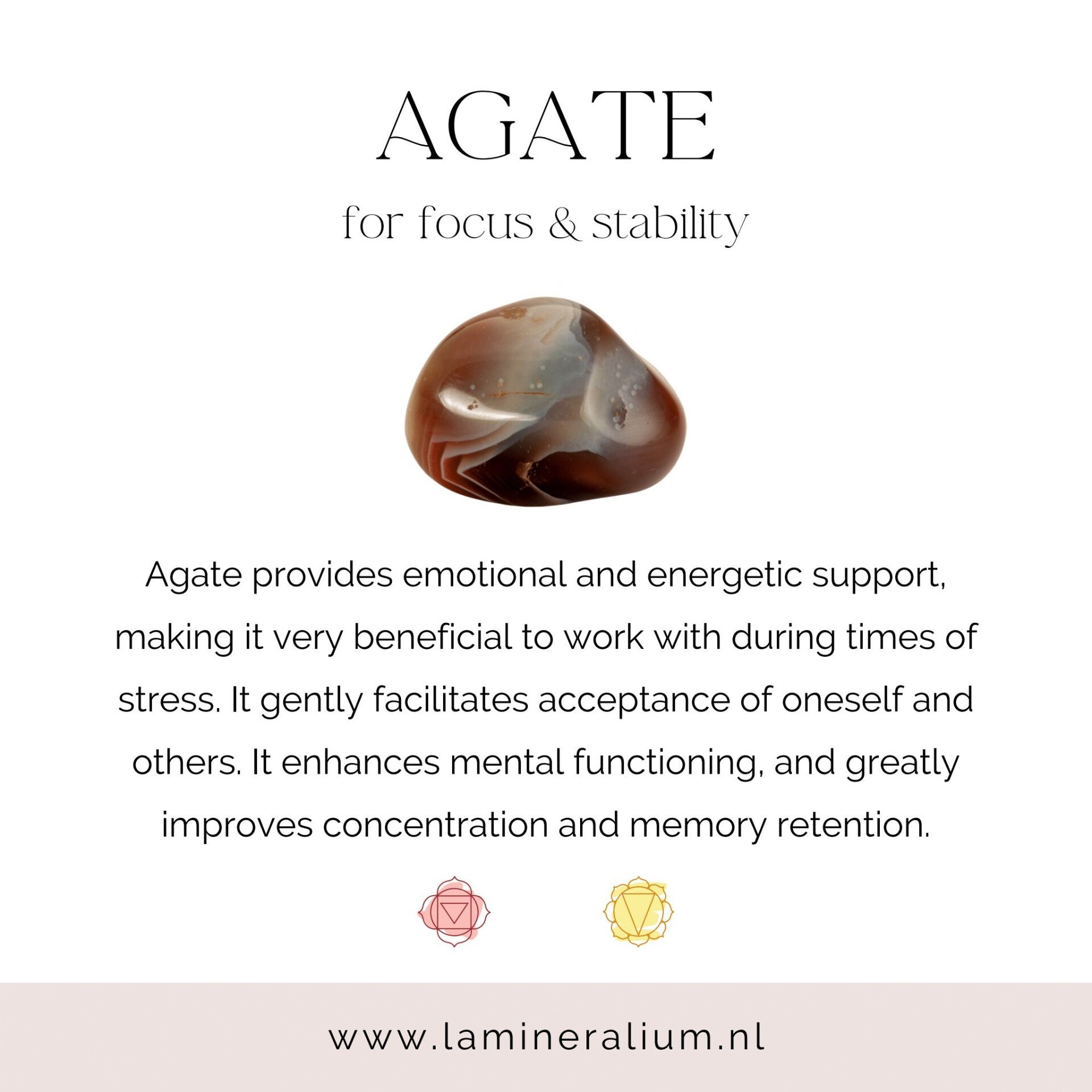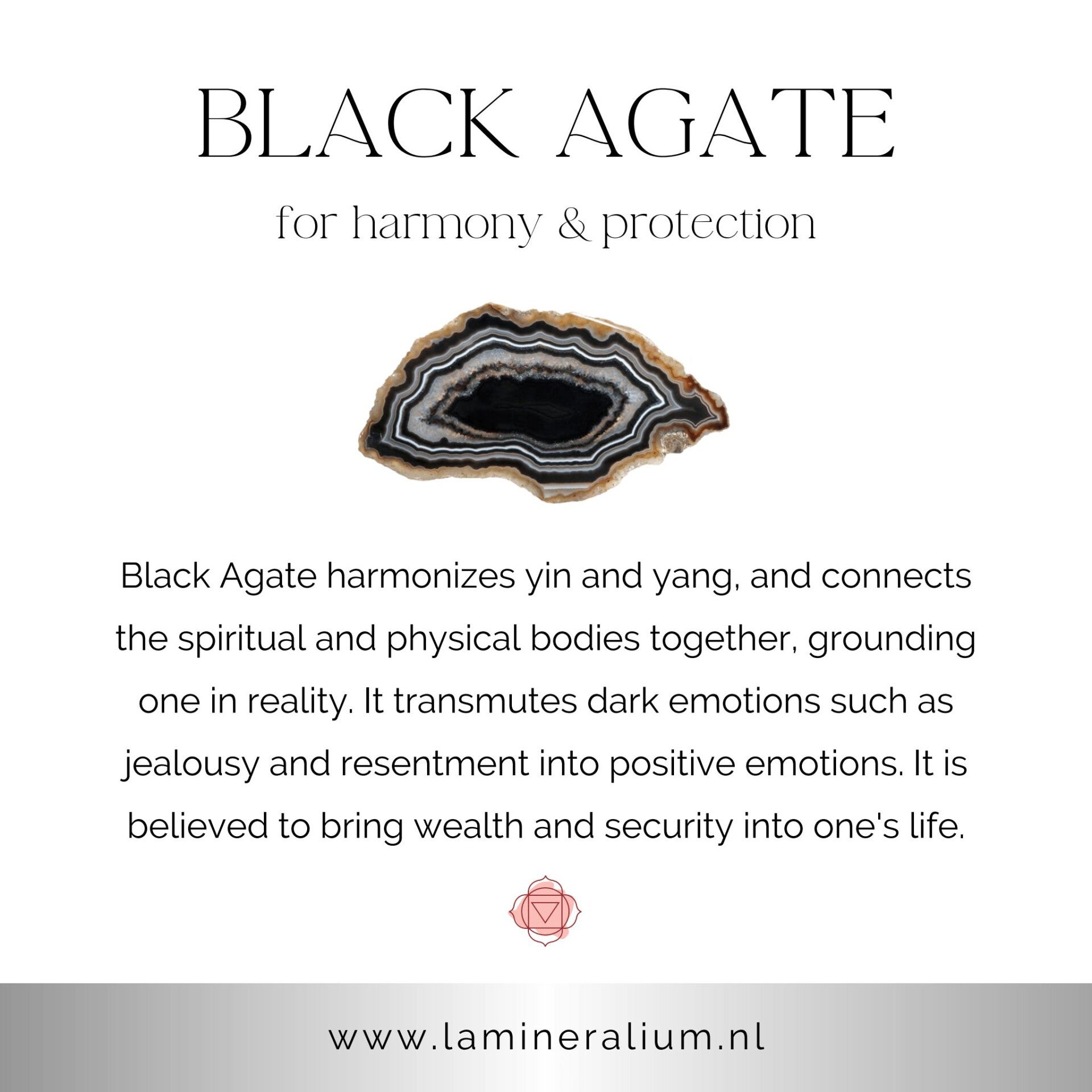 Agaat staat bekend om haar stabiliserende en beschermende energie en ondersteunt innerlijke balans, aarding en een gevoel van veiligheid en vertrouwen.