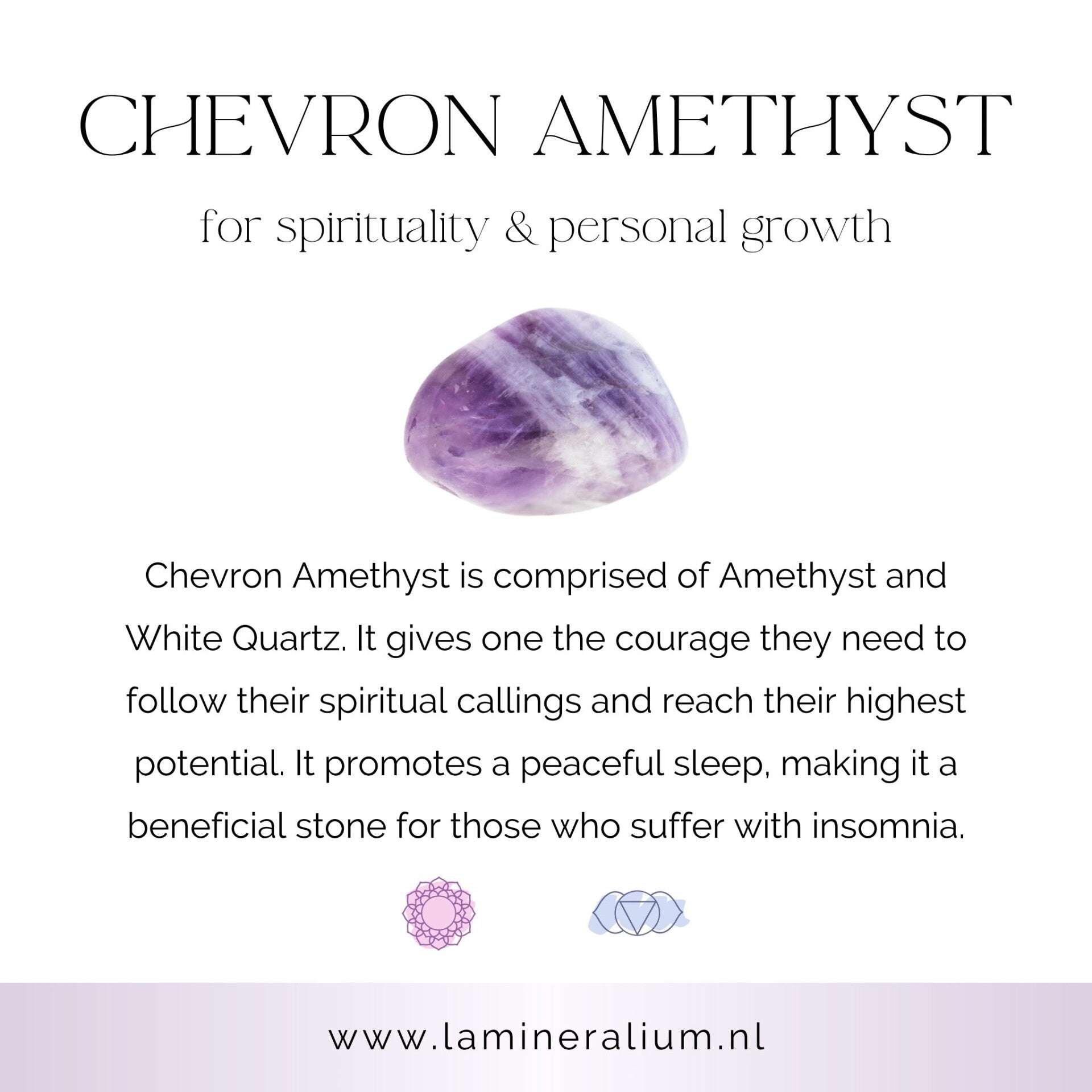 Amethist staat bekend om haar beschermende en zuiverende energie en ondersteunt ontspanning, intuïtie