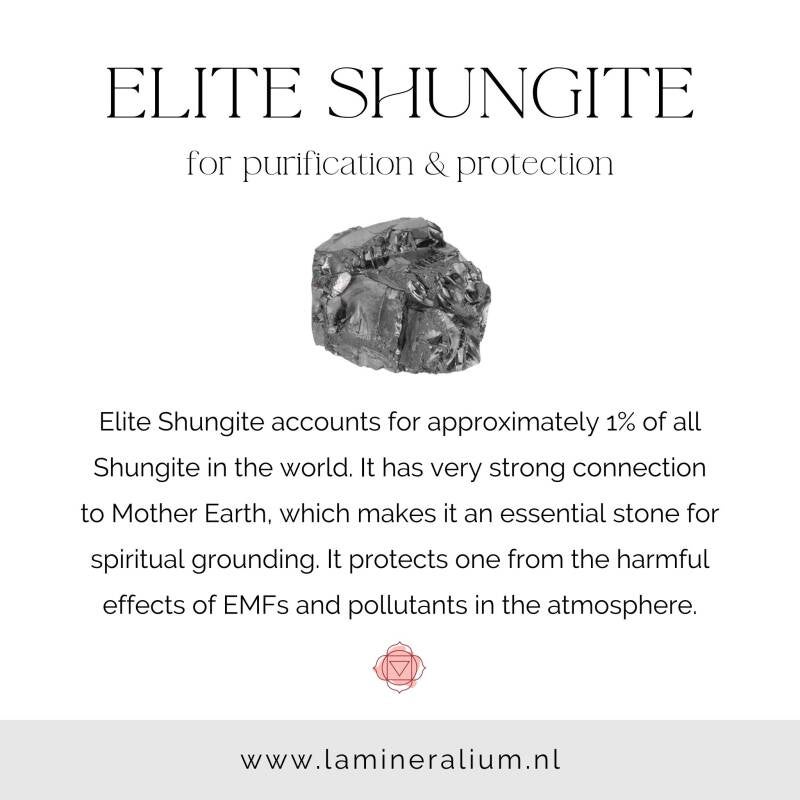 in een veld van zuivere kracht en balans." Edel Shungiet staat bekend om haar sterk beschermende en zuiverende energie en ondersteunt aarding, energetische bescherming en innerlijke stabiliteit.