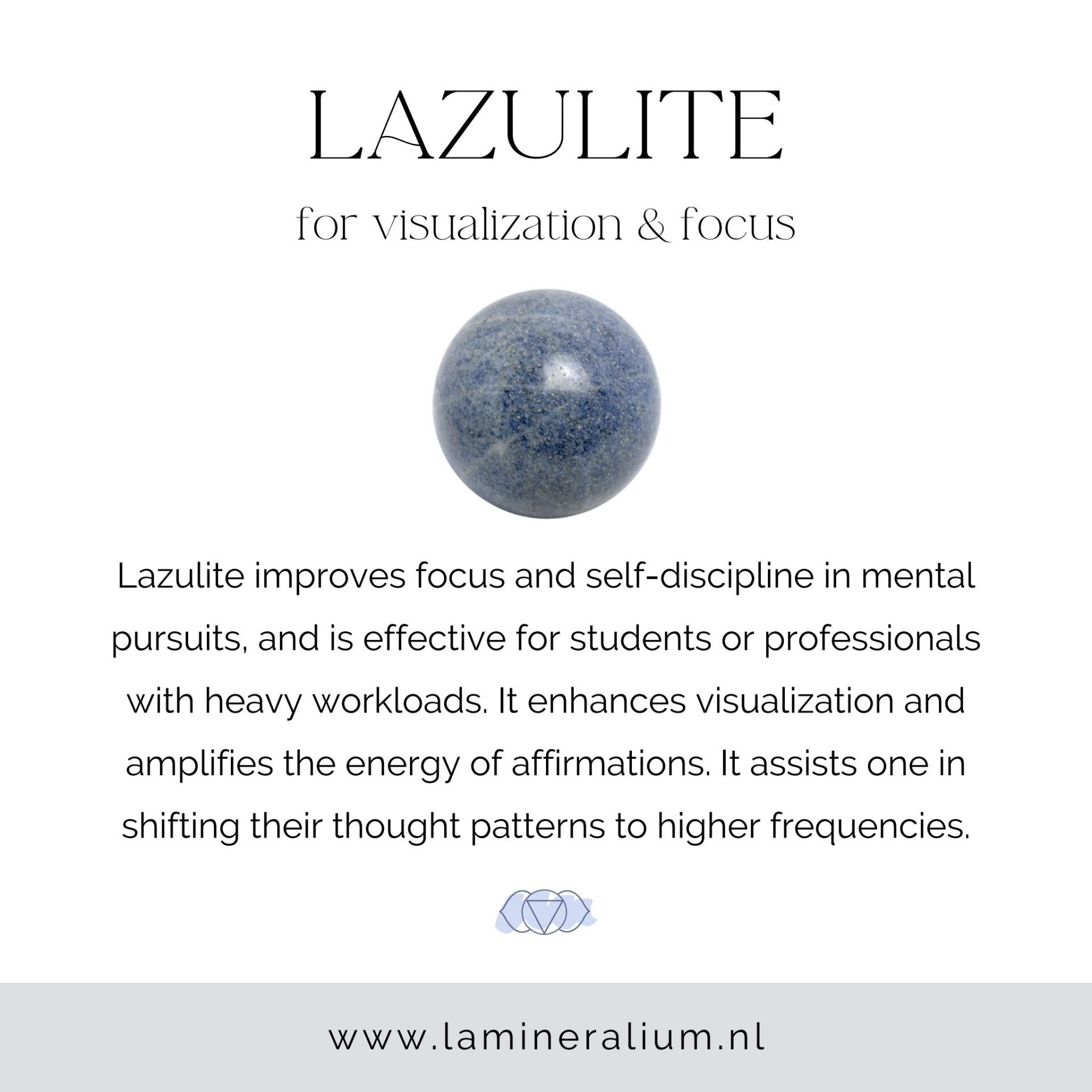 haar stabiliserende en inzichtgevende energie en ondersteunt focus, innerlijke kracht en het volgen van