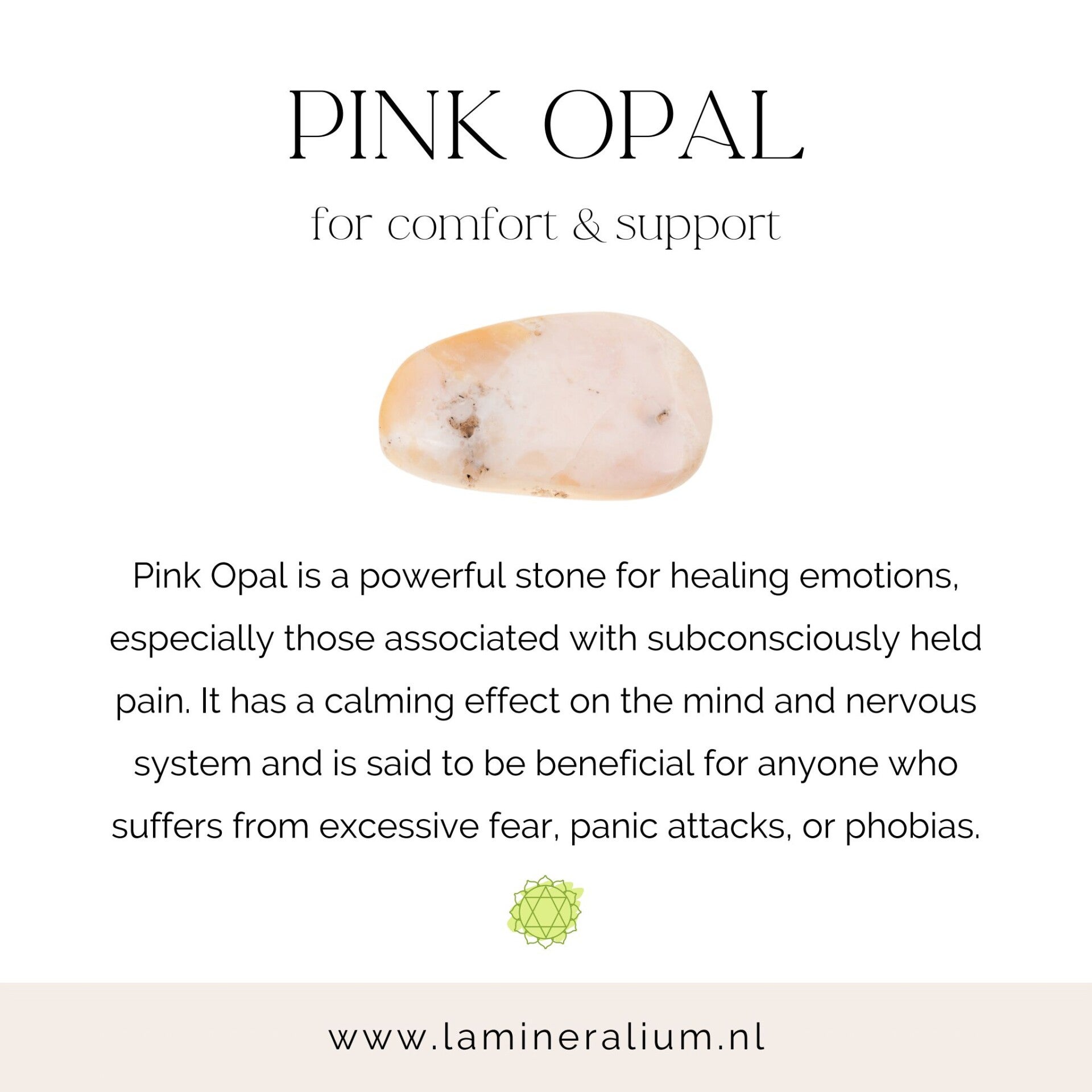 om haar vernieuwende en harmoniserende energie en ondersteunt emotionele heling, groei en verbinding met je hartenergie.