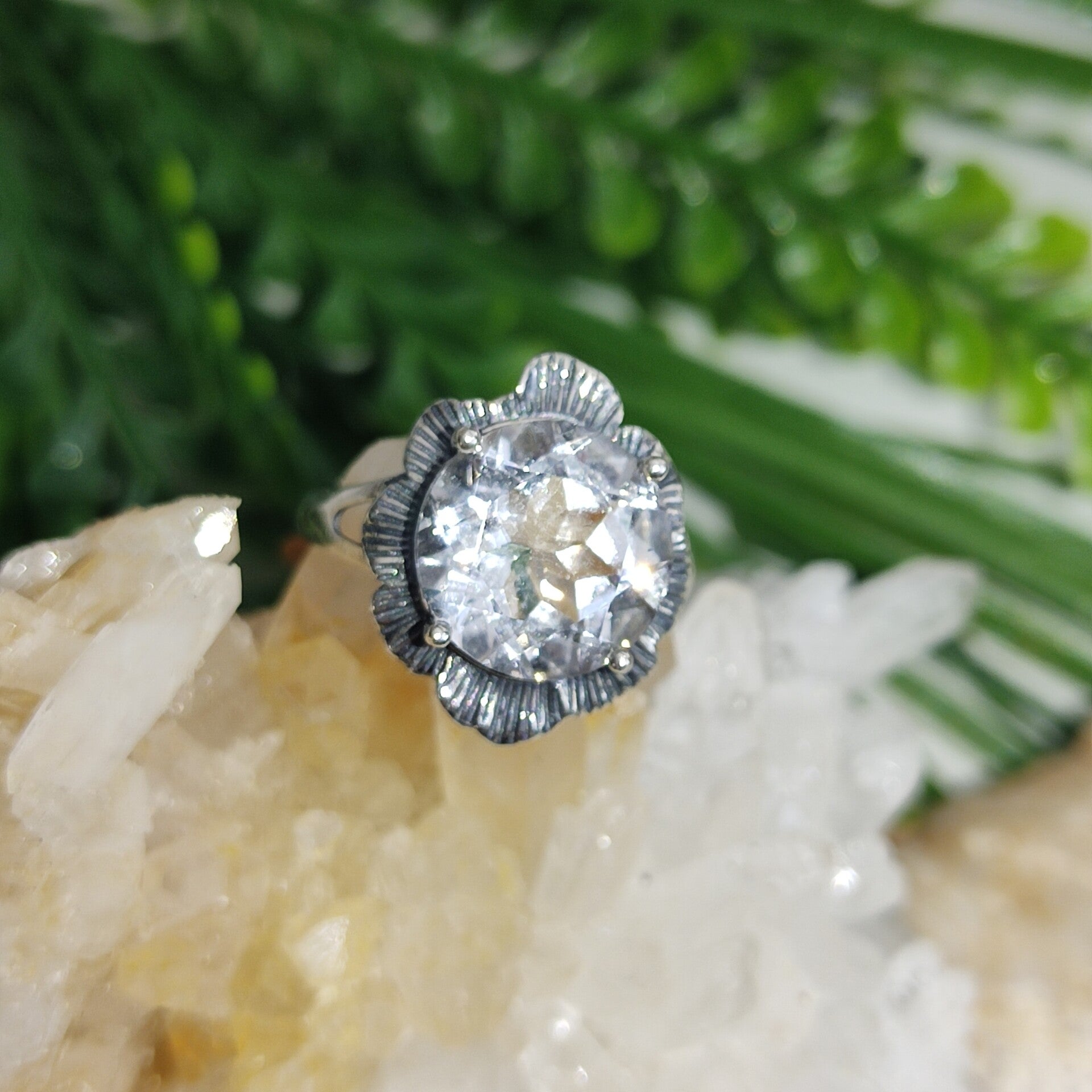 Deze prachtige facet geslepen bergkristal gezet in 925 Zilver en heeft standaard maat 17,5 maar is een maat groter als kleiner verstelbaar.