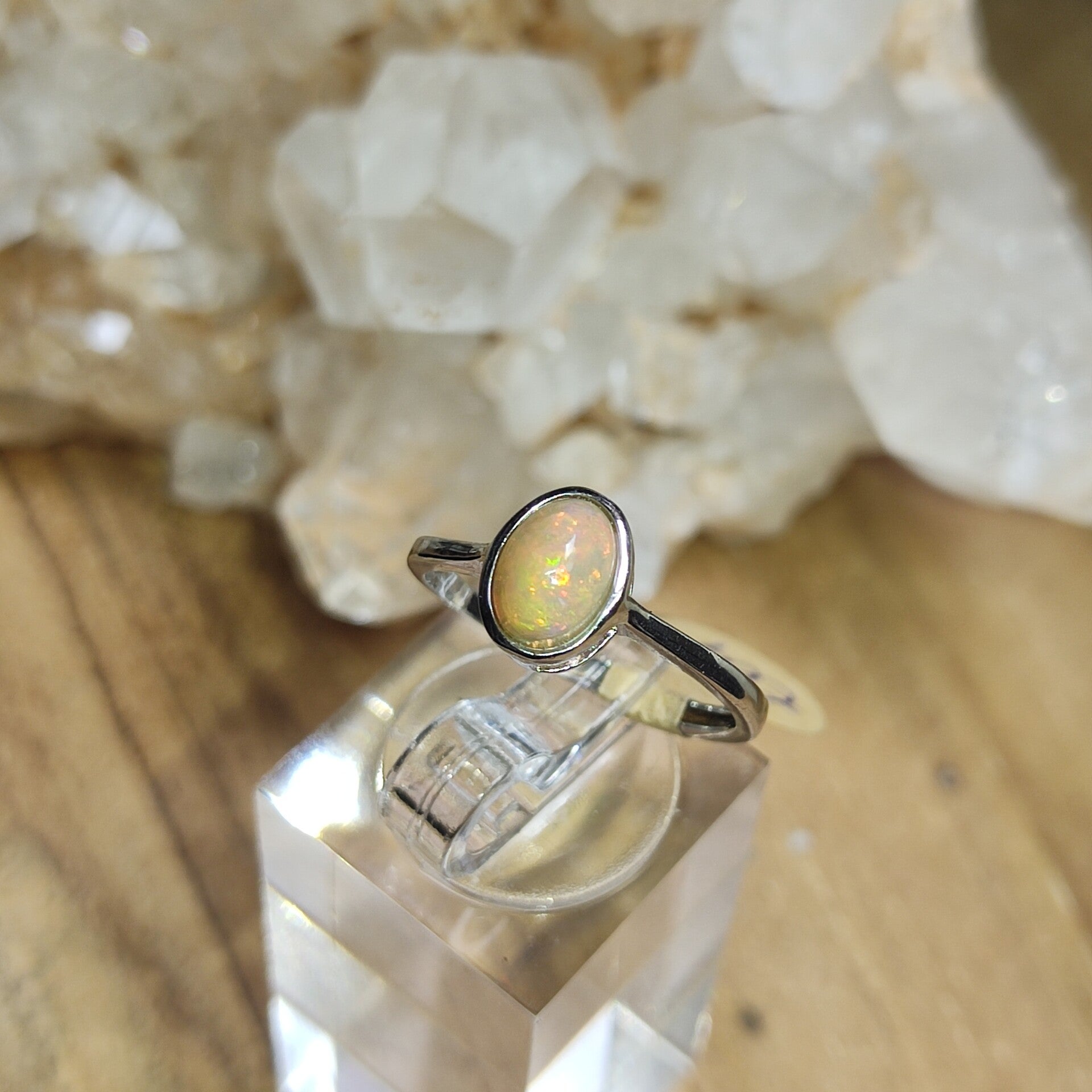 En kijk nou, dat kan toch ook niet anders? Prachtige kleurschakeringen in deze ring van Welo Opaal.