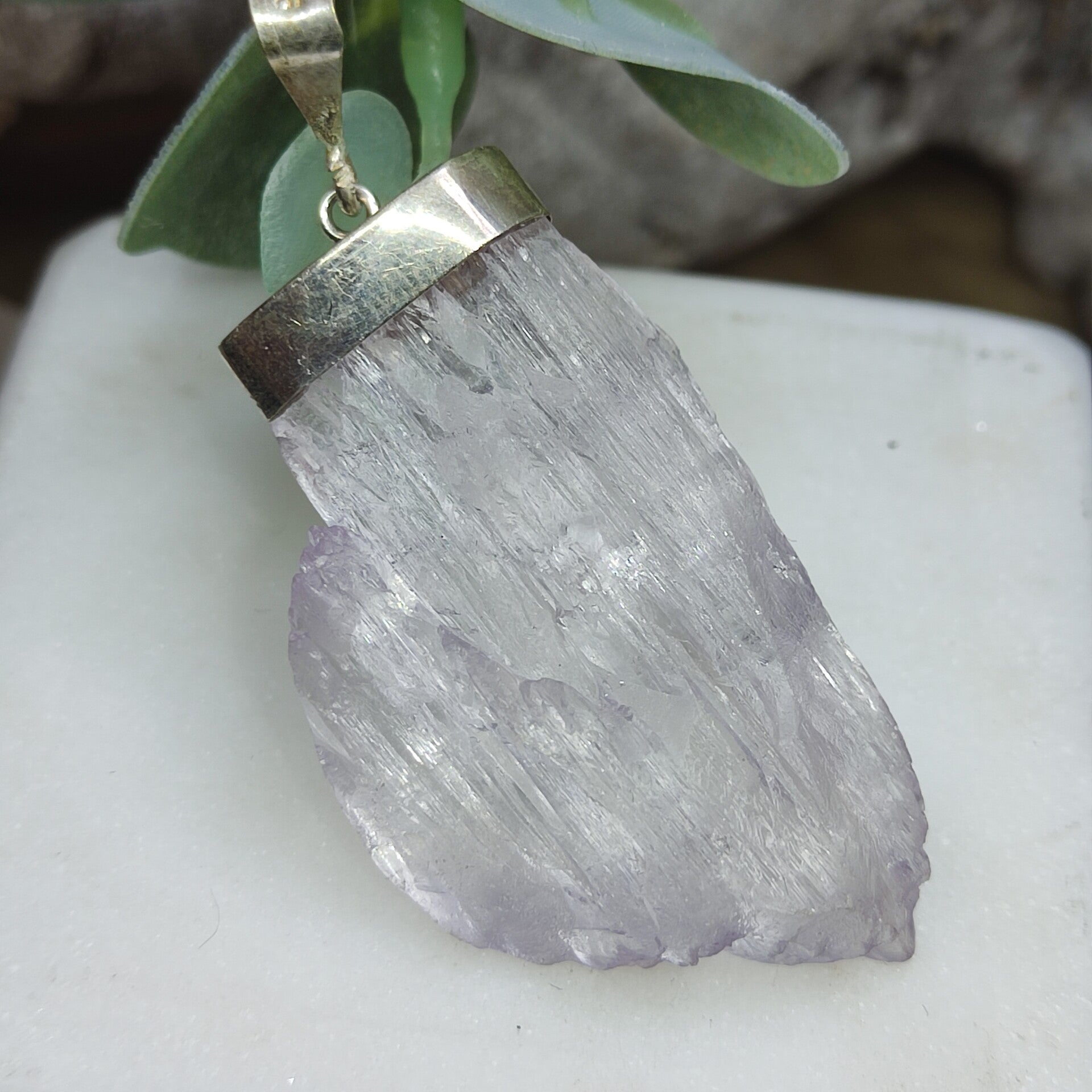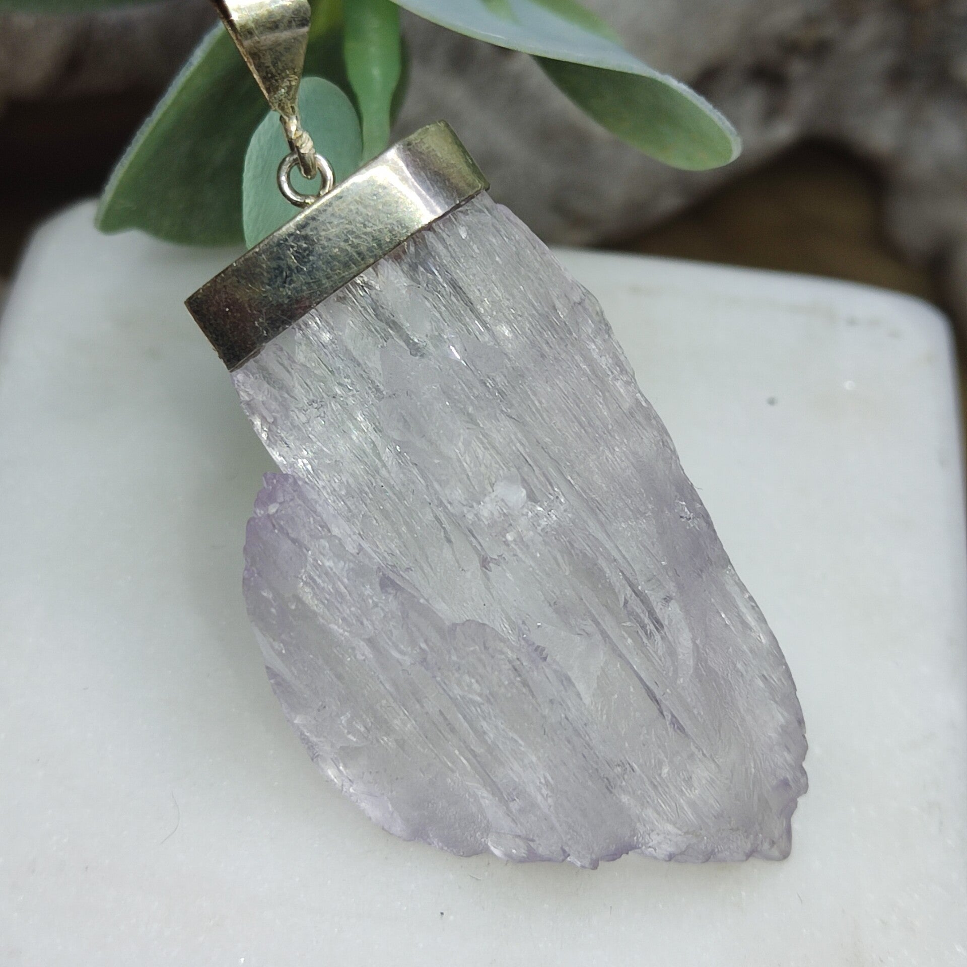Prachtige Zilveren Hanger (925 zilver) met ruwe lichtroze Kunziet.