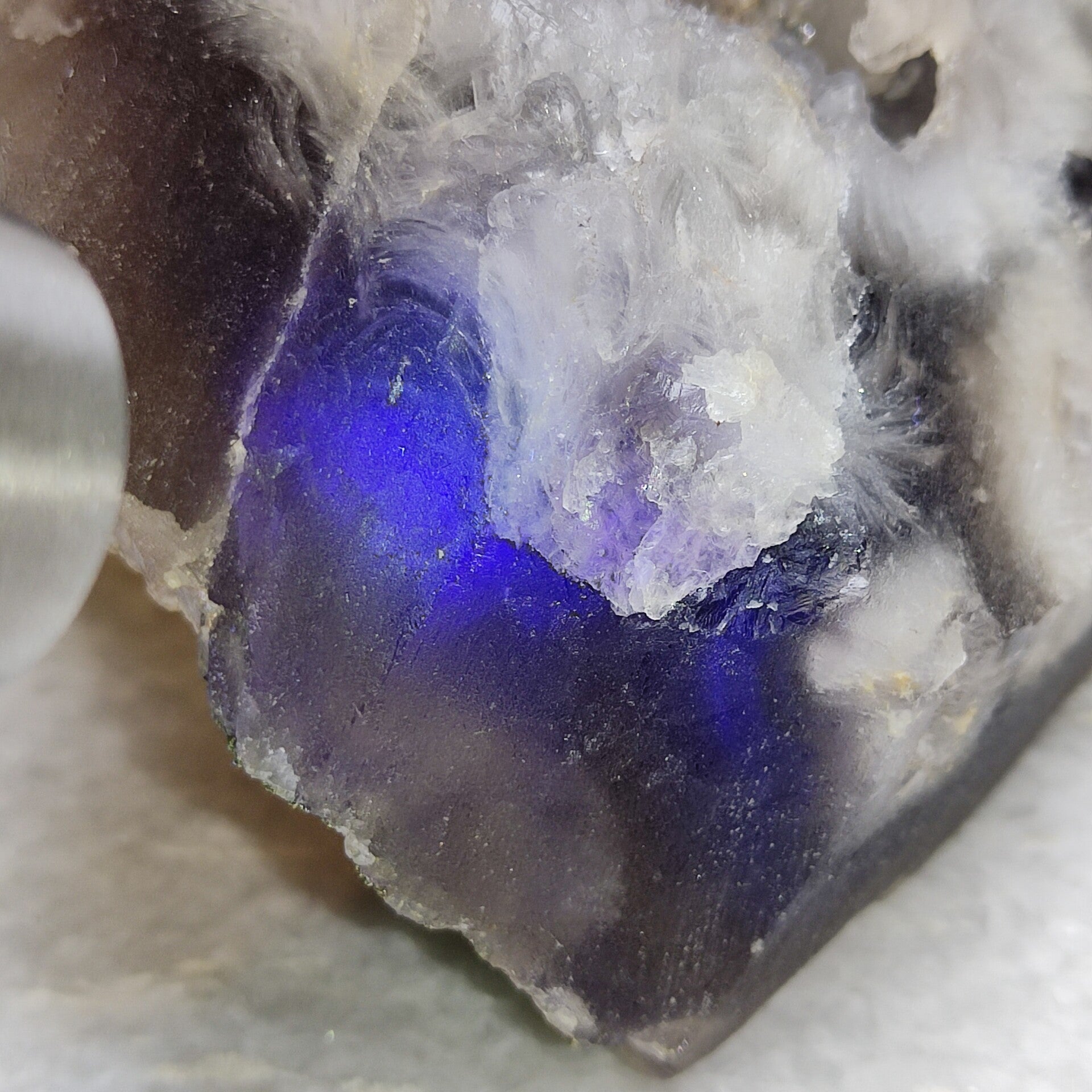 Purple fluorite with Pyrite combination, Blue UV Reactive.