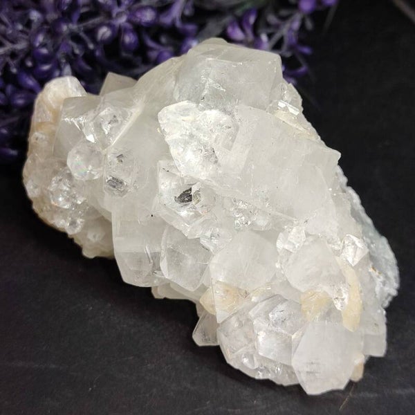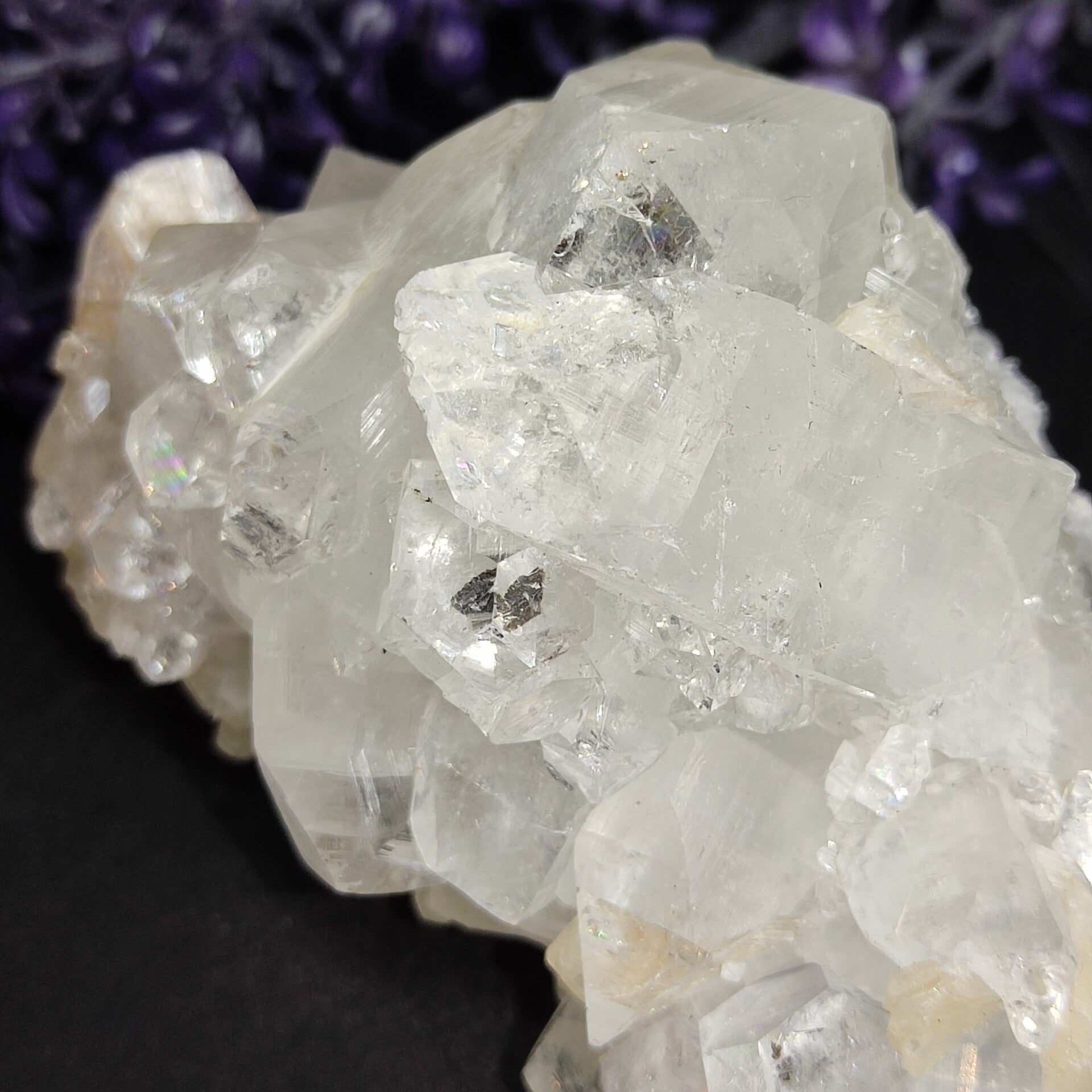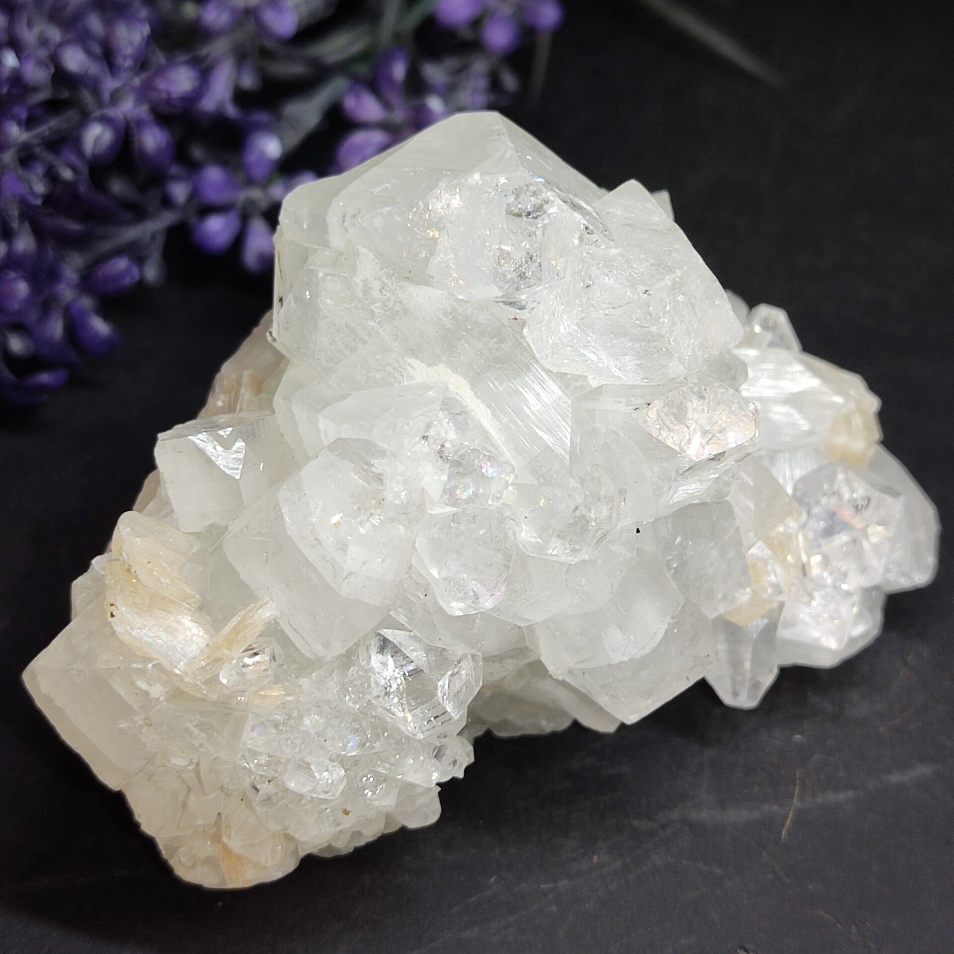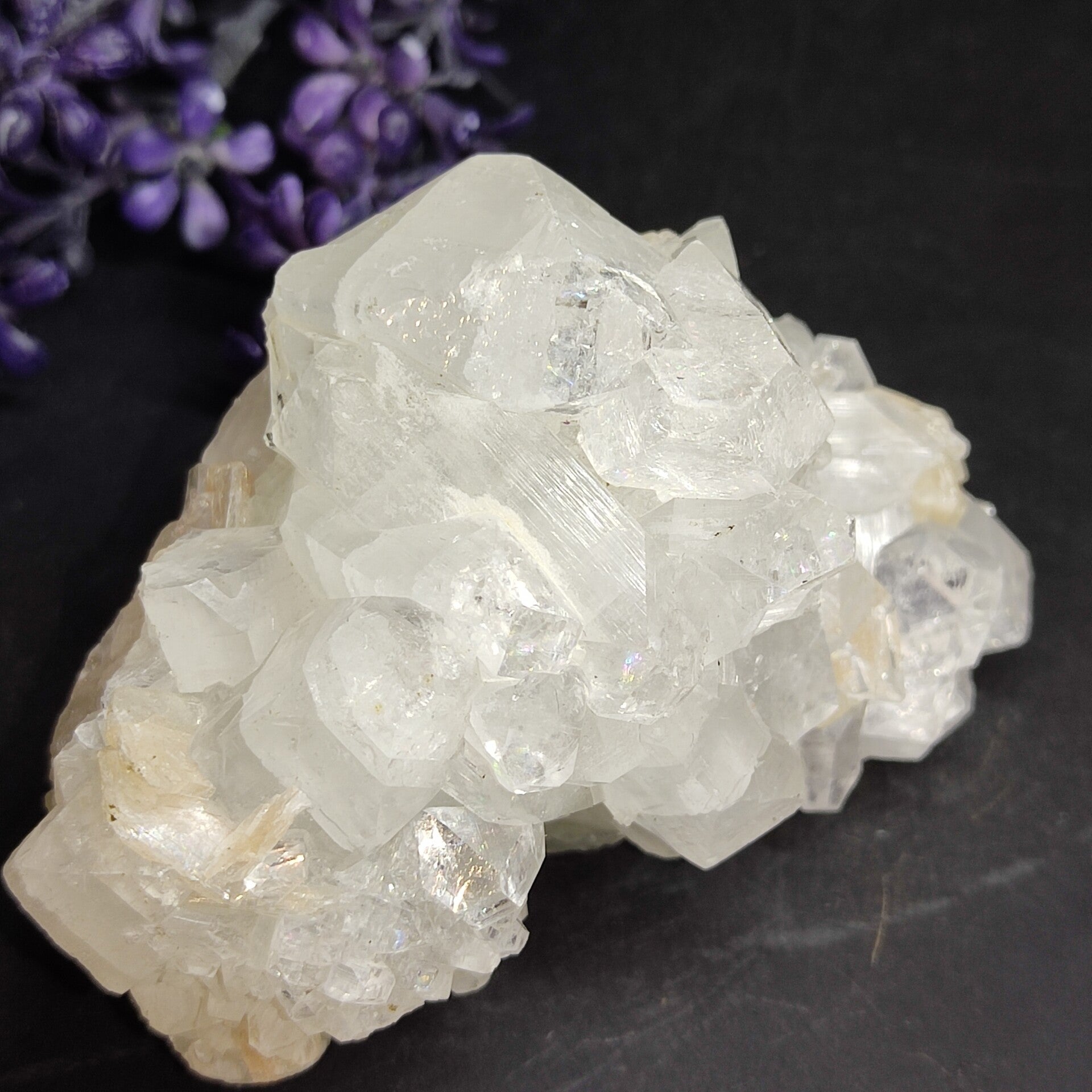 Dit prachtige spiegel apofyliet cluster met prachtige schitteringen, regenbogen en heel veel kleine kristallen en wat lichtroze stilbiet waar je maar naar blijft kijken is een krachtige aanvulling in iedere collectie!