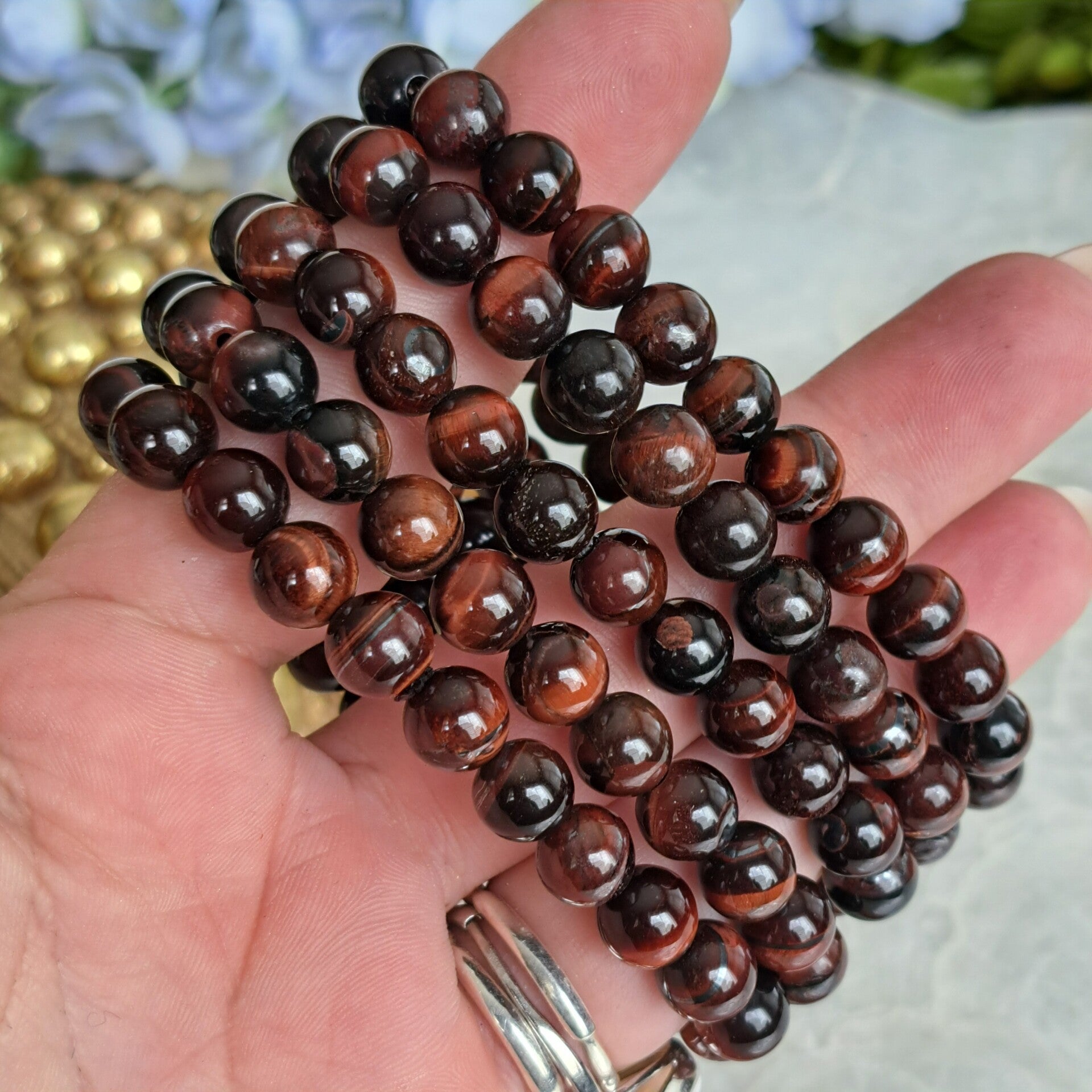 Draag de mooiste mineralen altijd bij je met deze mooie mineralen armband met Rode Tijgeroog kraal van 8 mm, ze is elastisch en past om bijna iedere pols.
