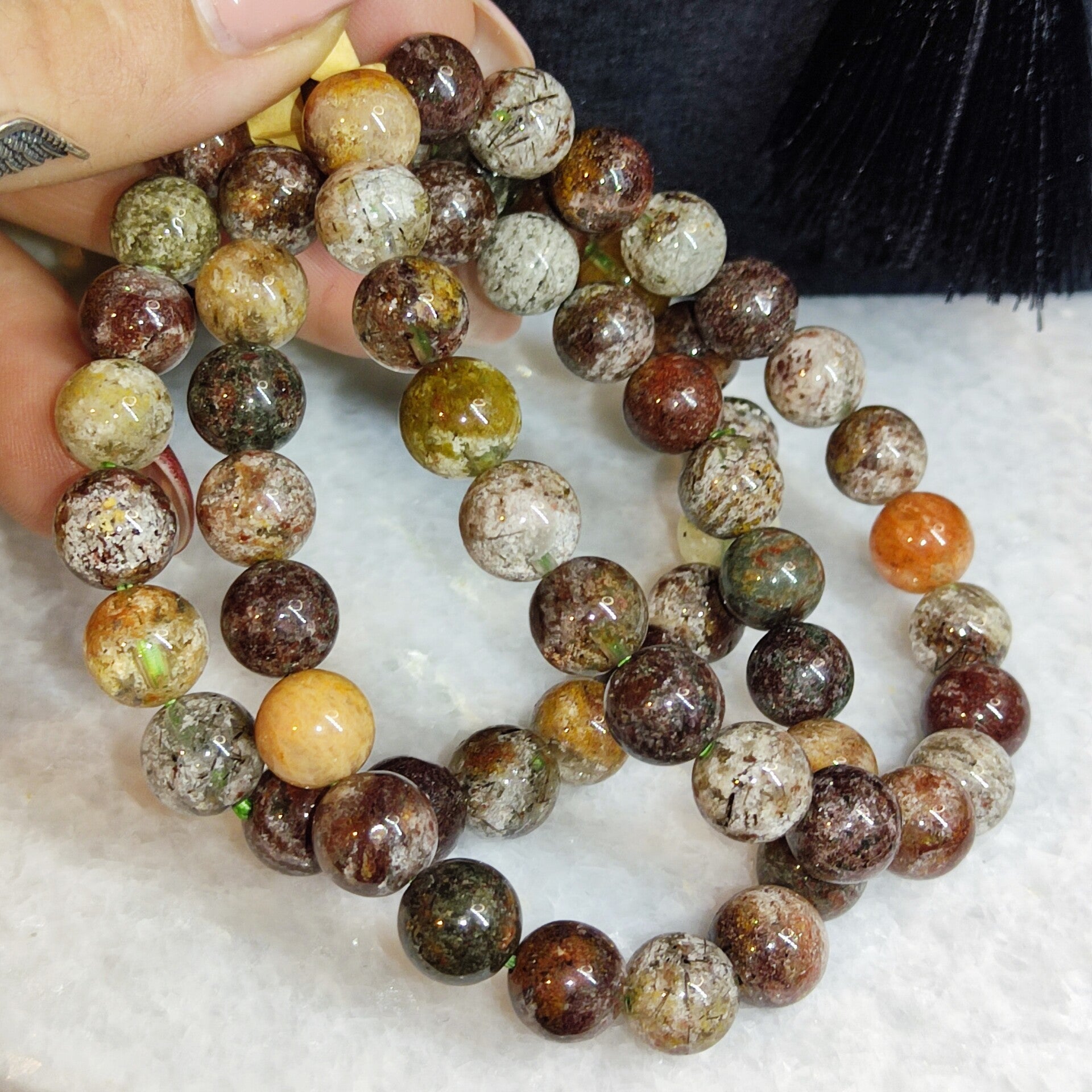 Draag de mooiste mineralen altijd bij je met deze mooie mineralen armband met kleurrijke lodoliet kraal van 9 mm, ze is elastisch en past om bijna iedere pols.