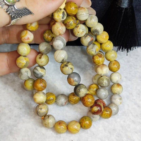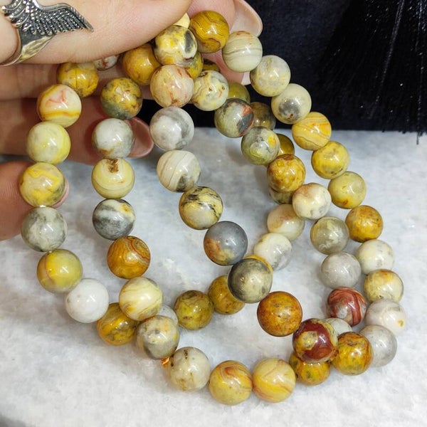 Draag de mooiste mineralen altijd bij je met deze mooie mineralen armband met Crazy Lace Agaat kraal van 8 mm, ze is elastisch en past om bijna iedere pols.