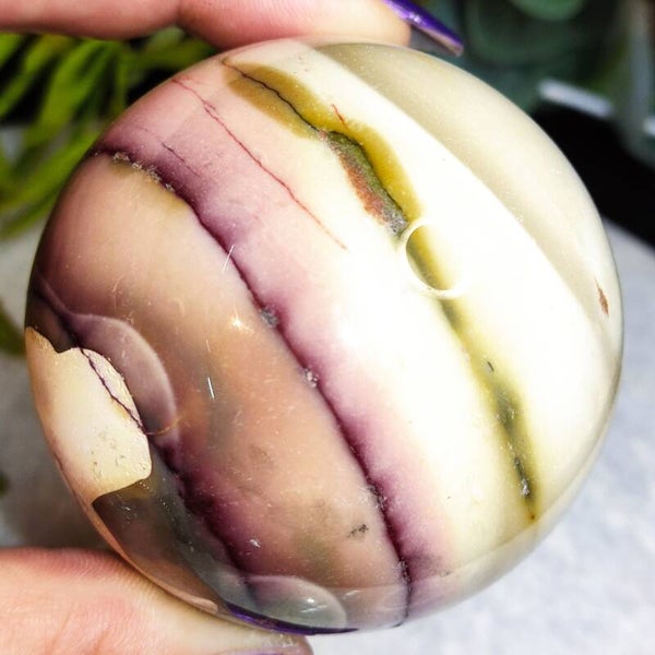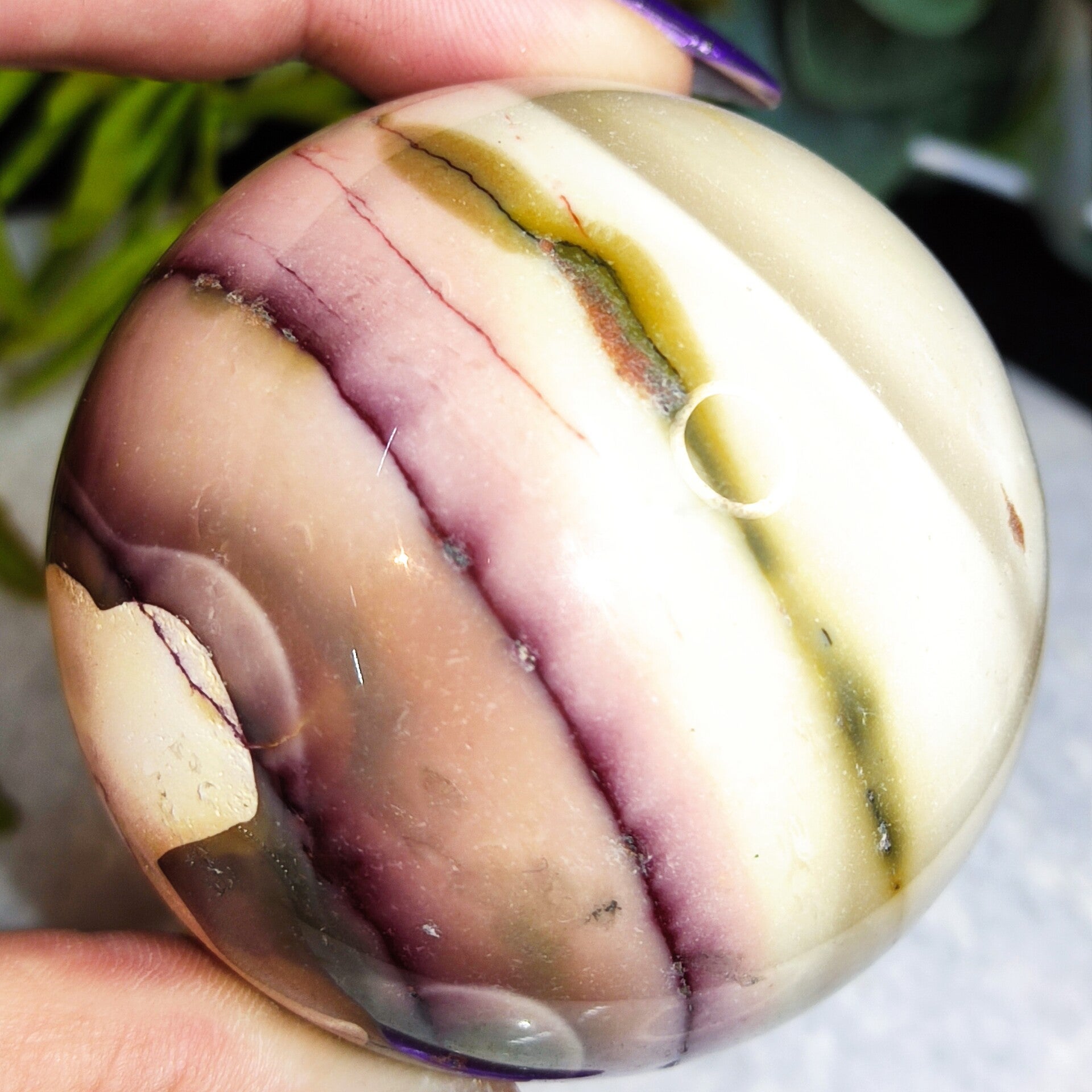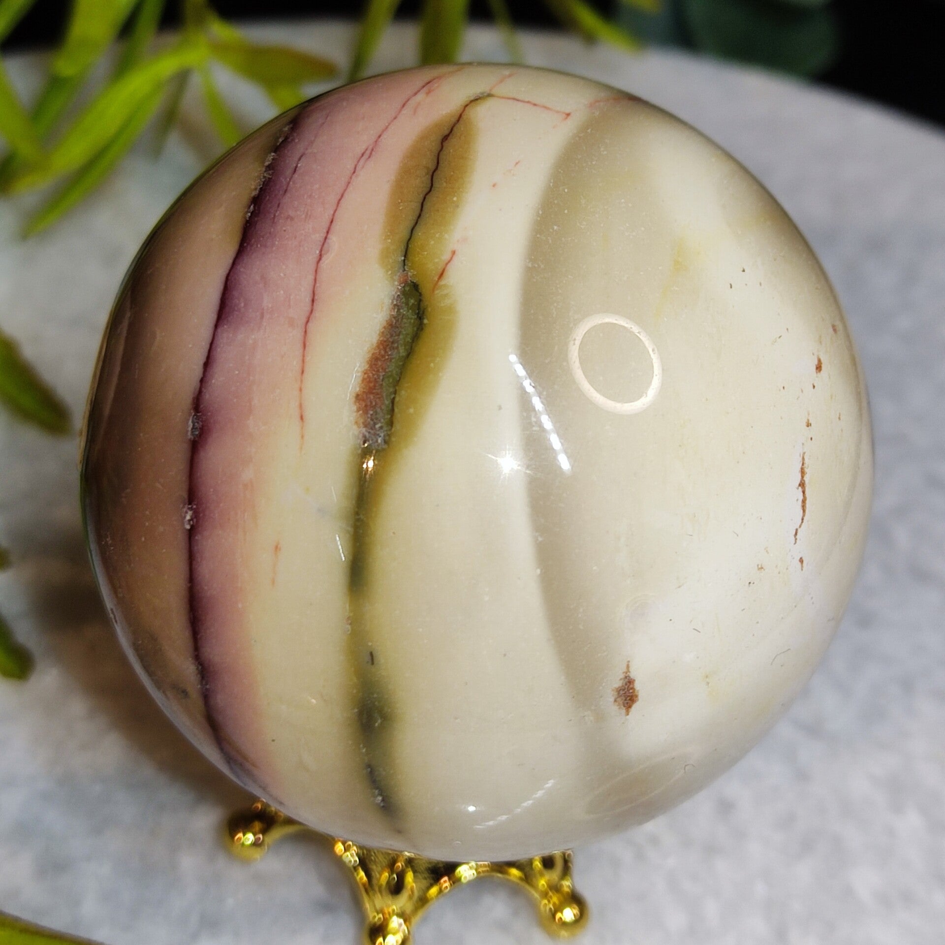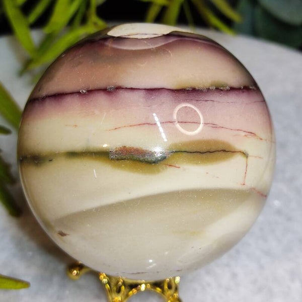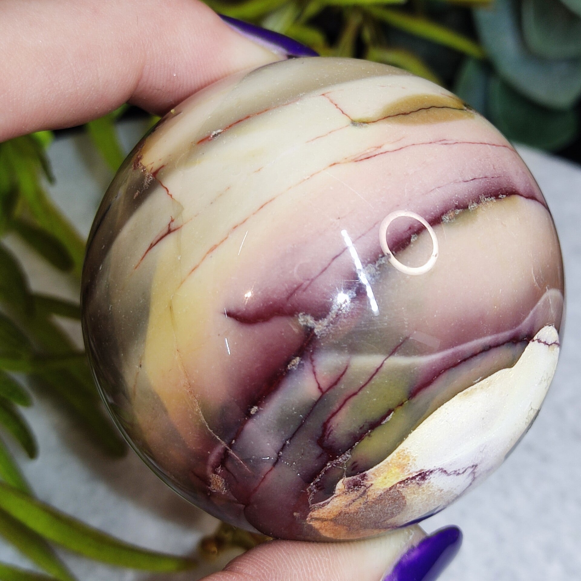 Mookaiet is een sterk aardendende en verwarmende steen met aparte marmering van de kleuren geel, wit, rood en soms zelfs paars.