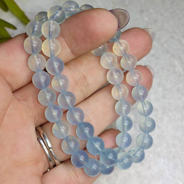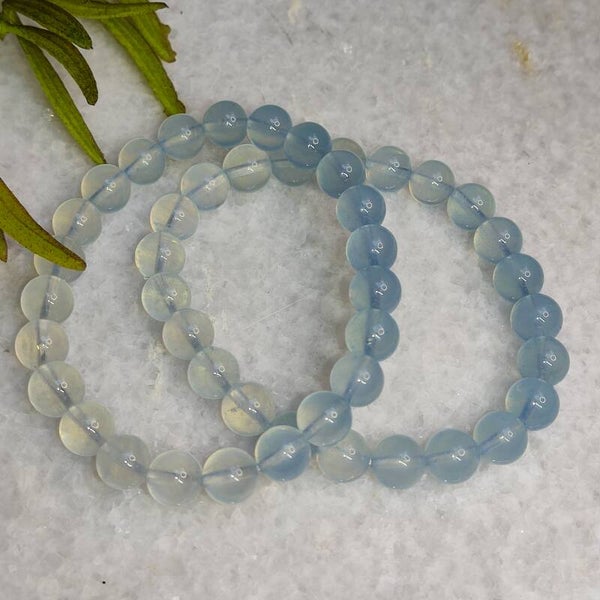 Draag de mooiste mineralen altijd bij je met deze mooie mineralen armband met Kleurverlopende Aquamarijn kraal van 8 mm (van licht naar donker), ze is elastisch en past om bijna iedere pols.