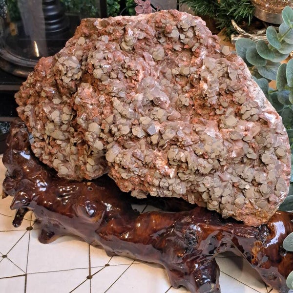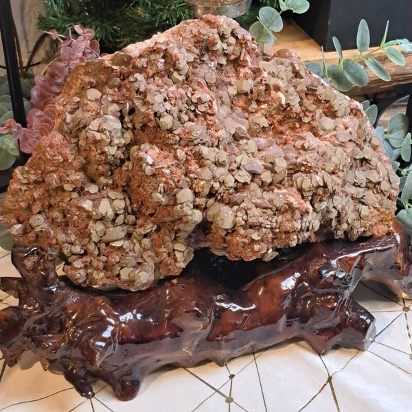 Dit XXL cluster staat op een voet van wortelhout, kan echter ook staan zonder ;-), is maar liefs 10,9 kilo en 44x25cm groot.