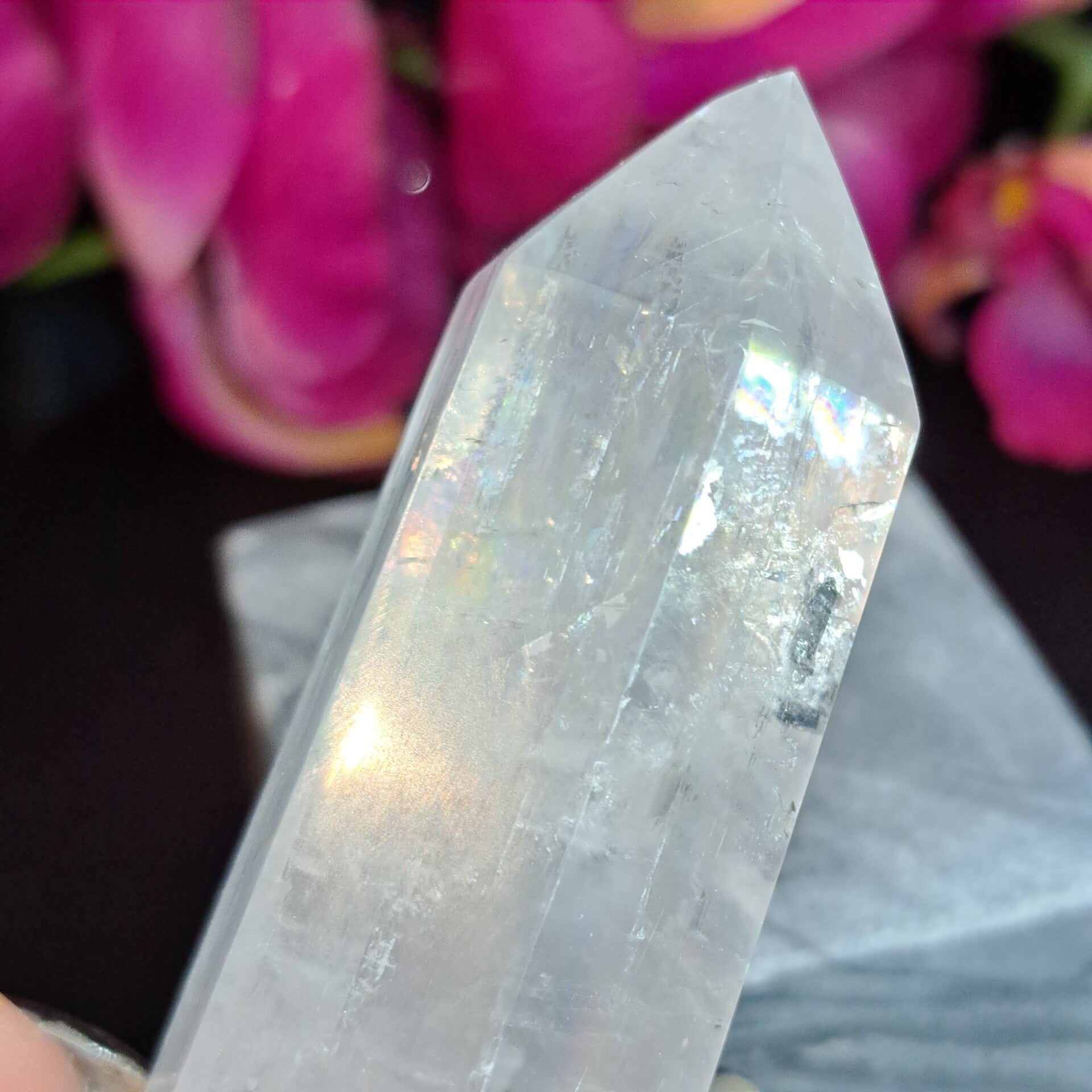 Deze prachtige punt vol regenbogen is 161 gram en 10 groot.