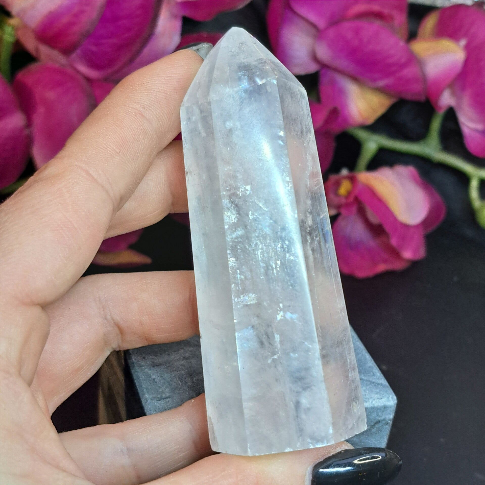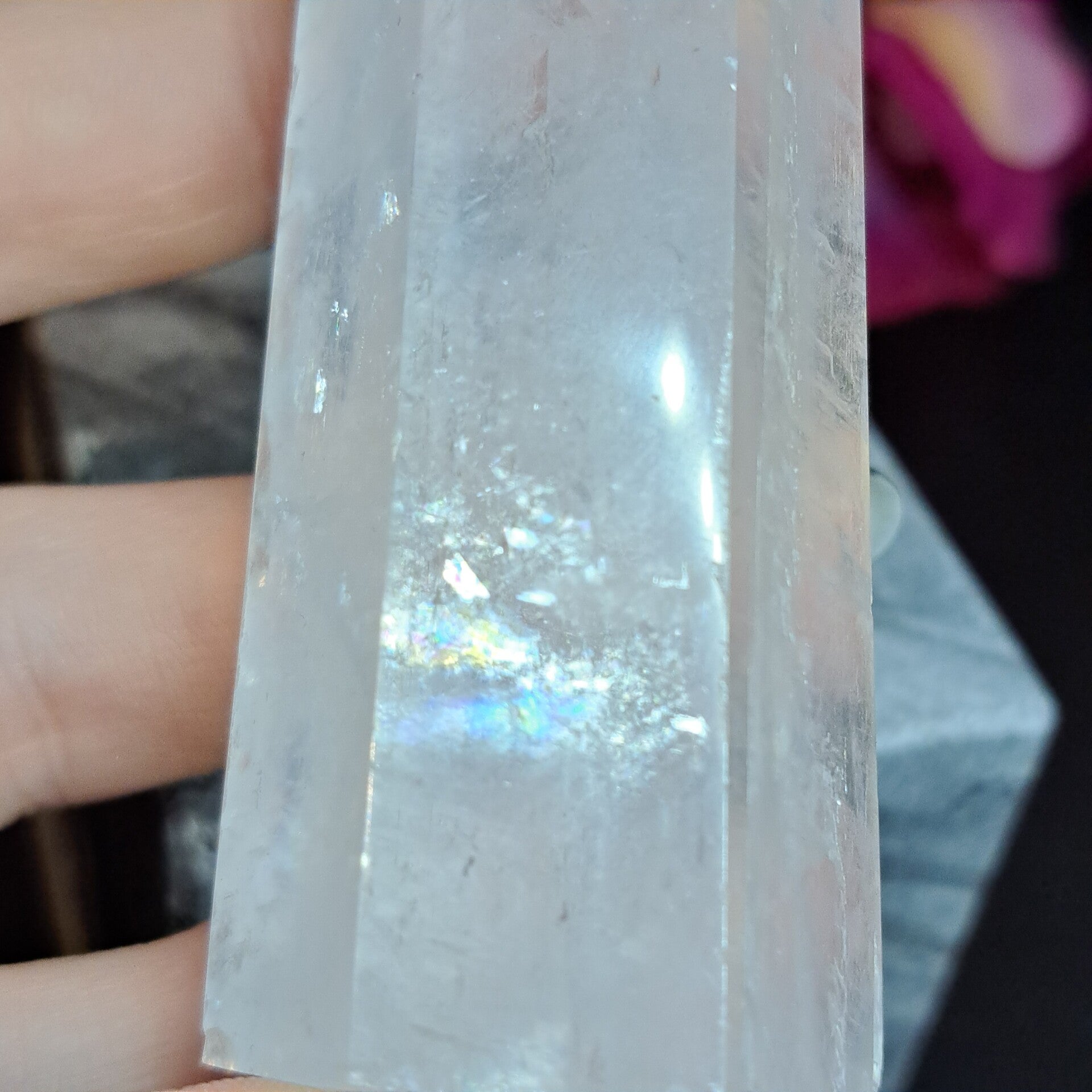 Deze prachtige punt vol regenbogen is 144 gram en 9 groot.