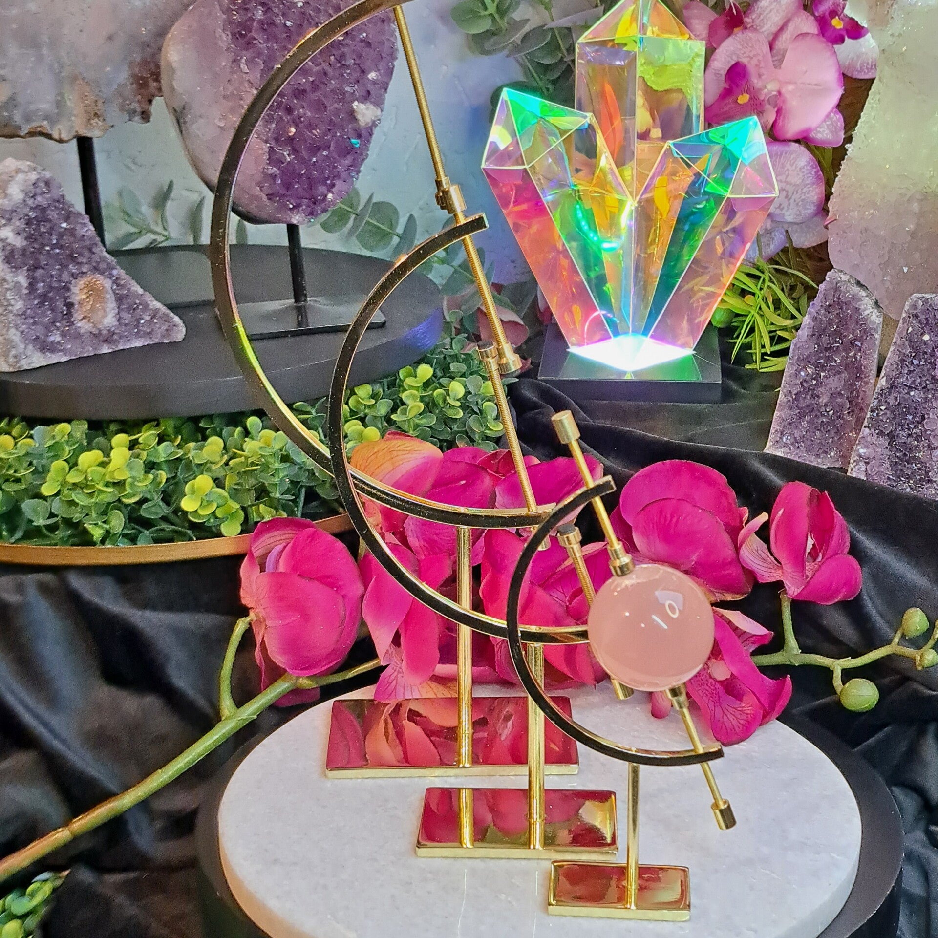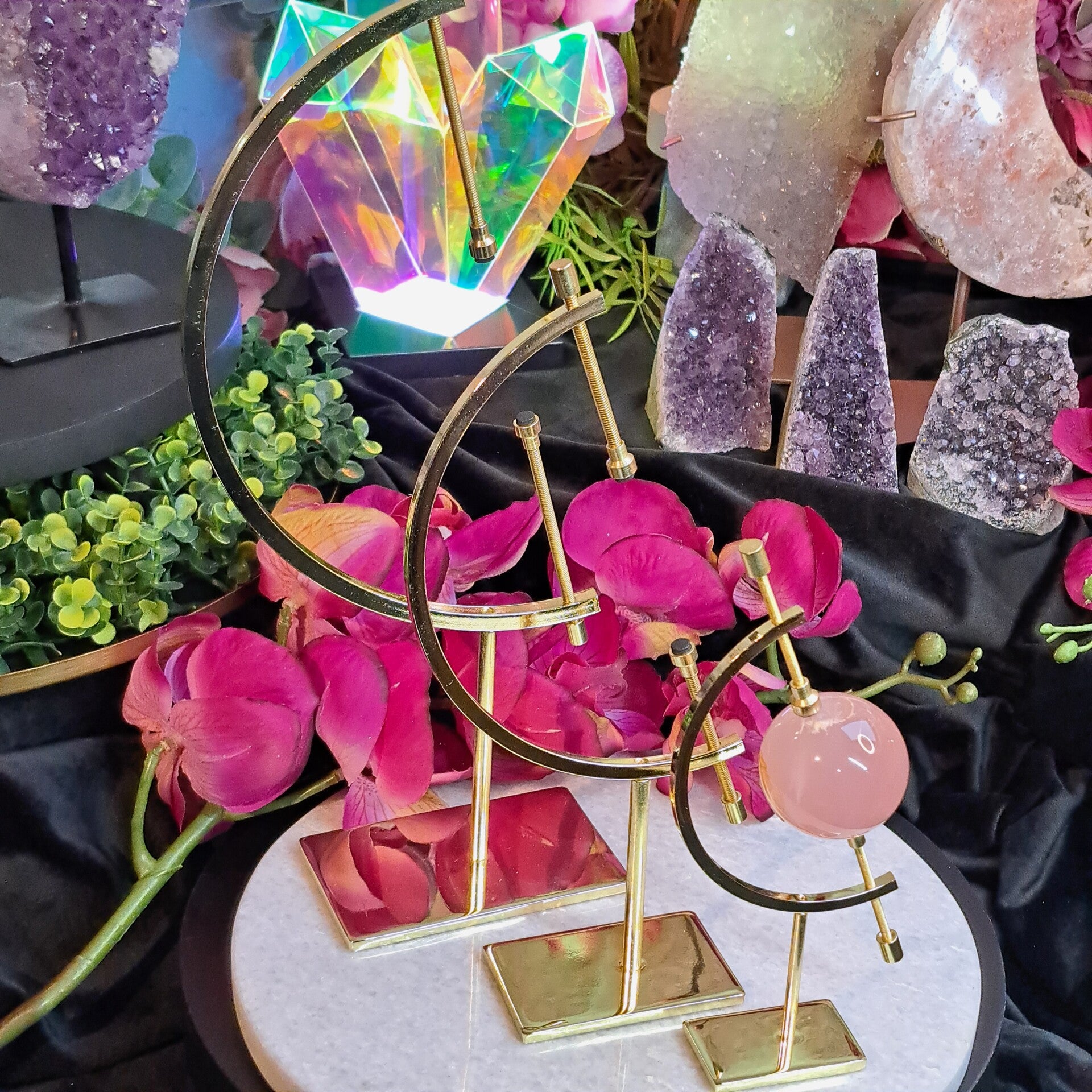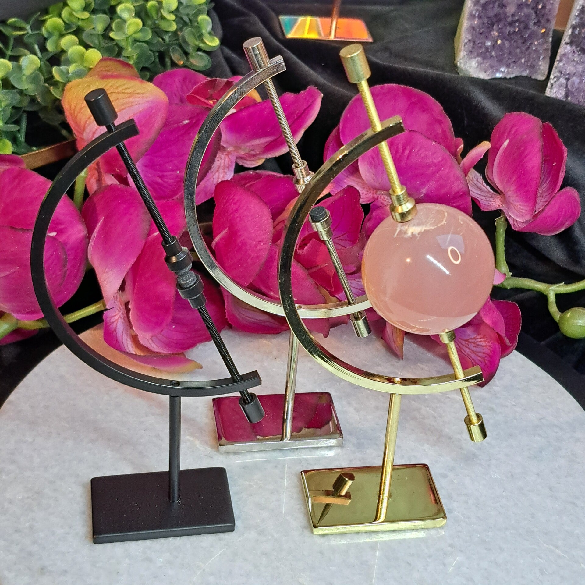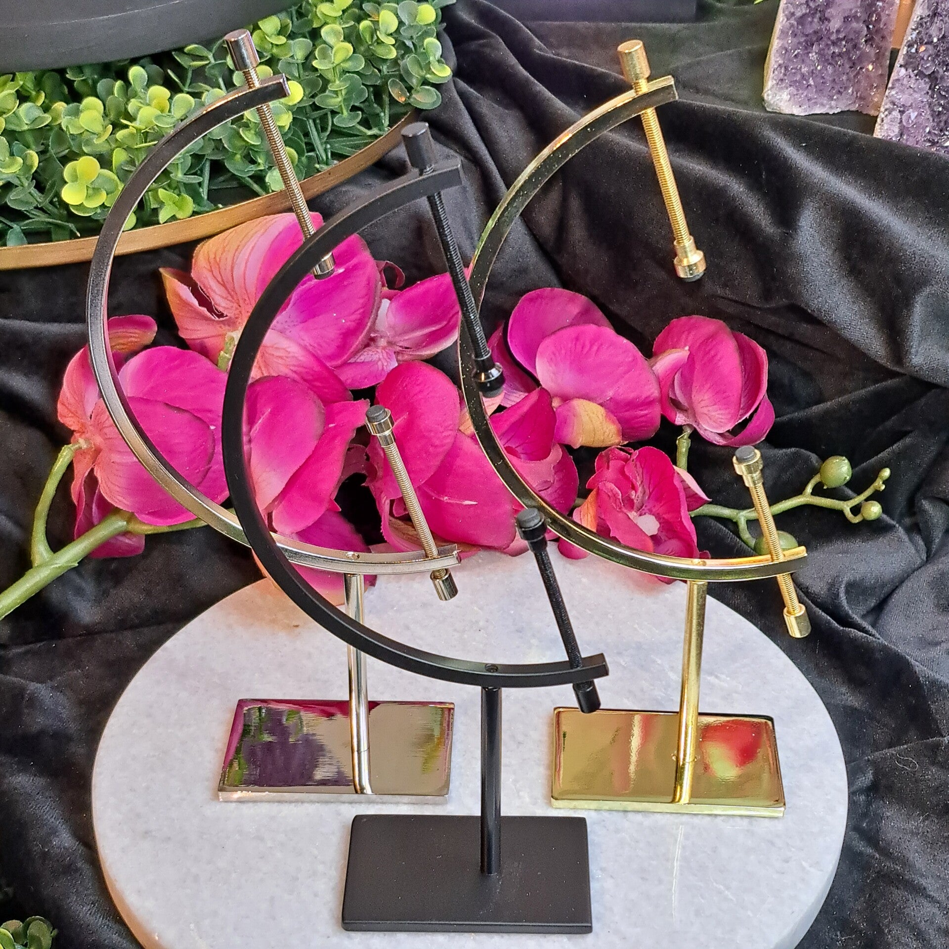 Toffe houder voor zowel bollen als ruwe stukken, harten of andere geslepen vormen. De groote is verstelbaar en te klemmen door de beschermde houder.Maat M is 24 cm hoog en er kunnen items tot maximaal 13 cm in geplaatst worden.