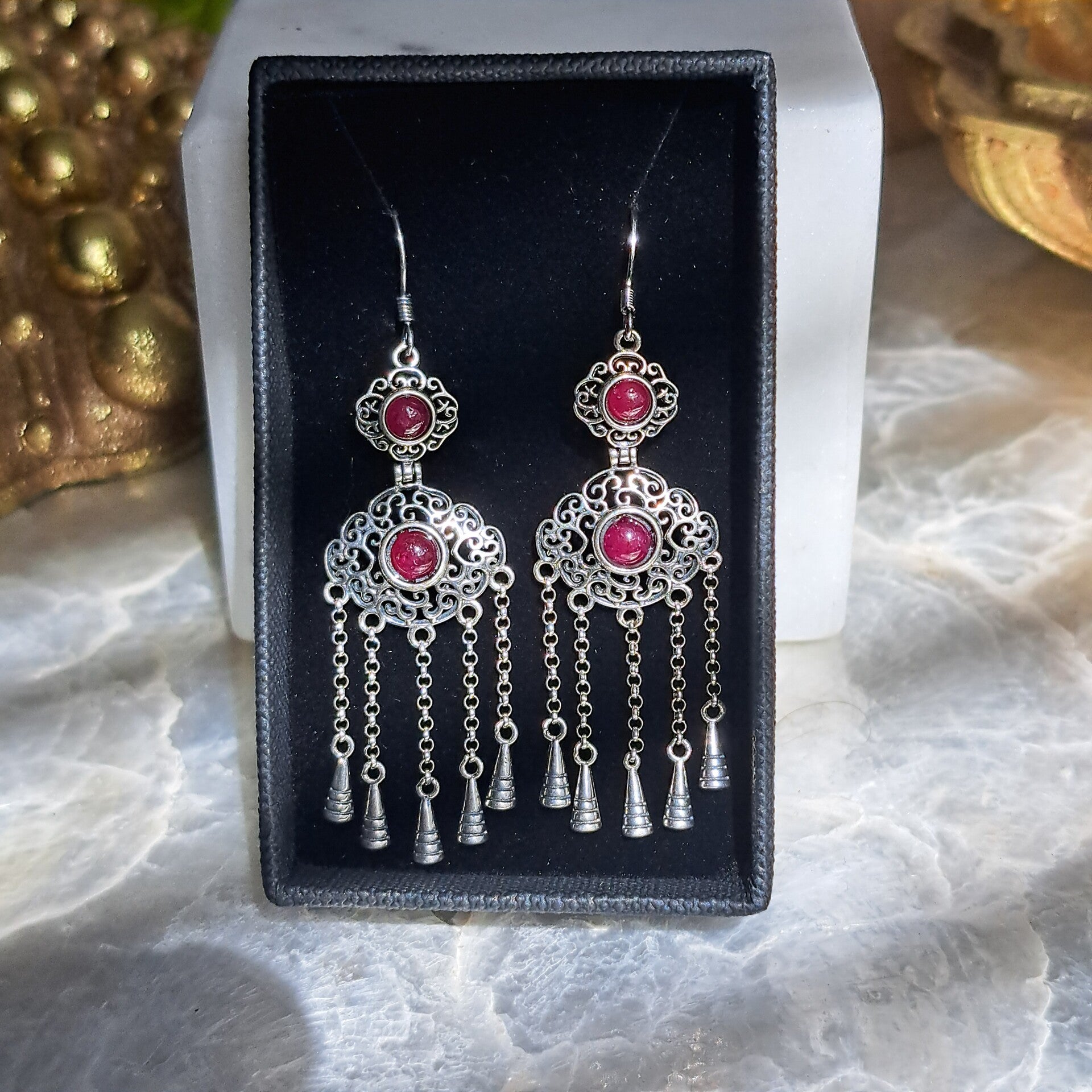Deze gave hang oorbellen met robijntjes zijn gezet in S925 zilver, en zijn ongeveer 5,8 cm lang.