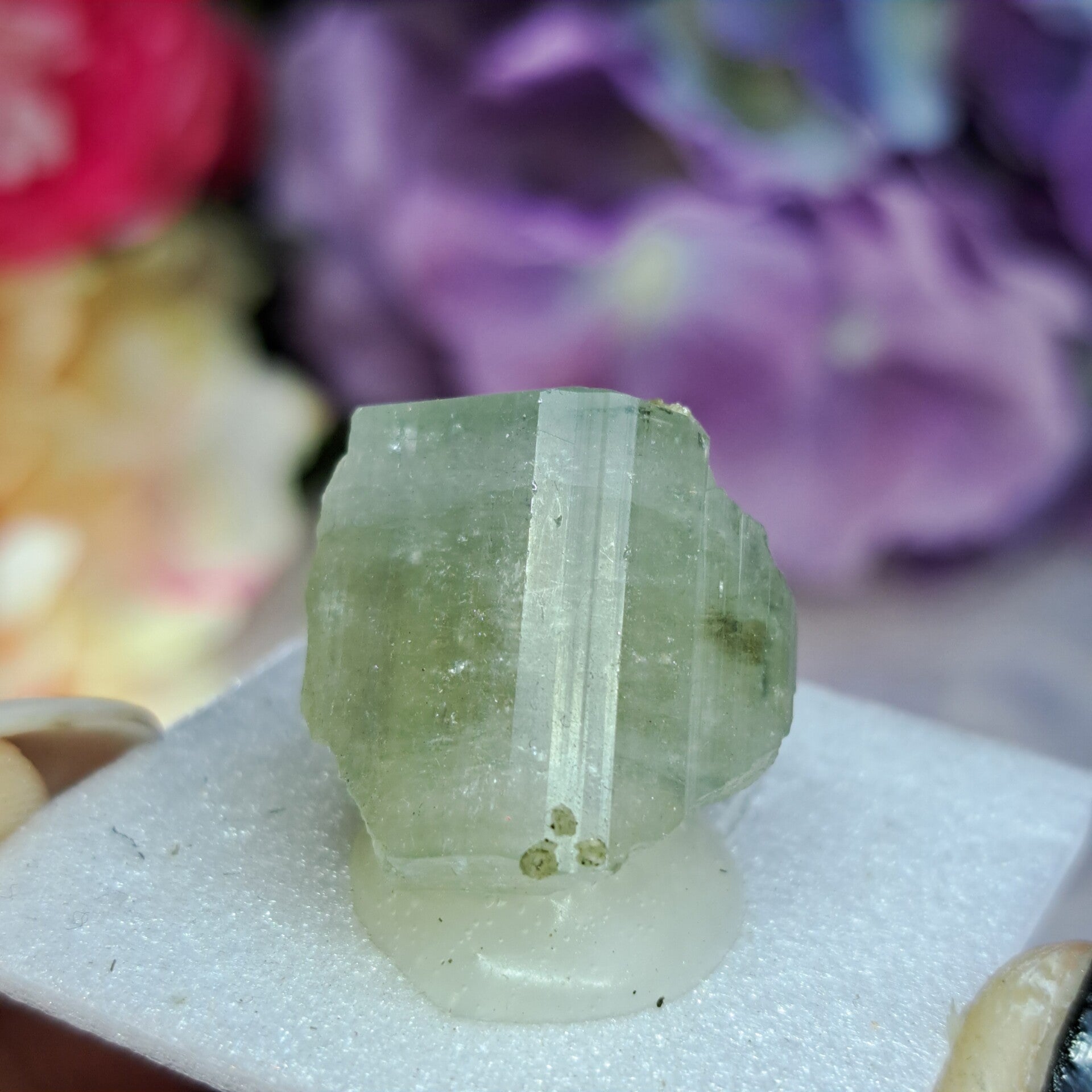 Apatiet is een zachte en brosse steen die makkelijk beschadigd, de kristalvorming onder de oppervlakte lijkt ook te zijn gebarsten.