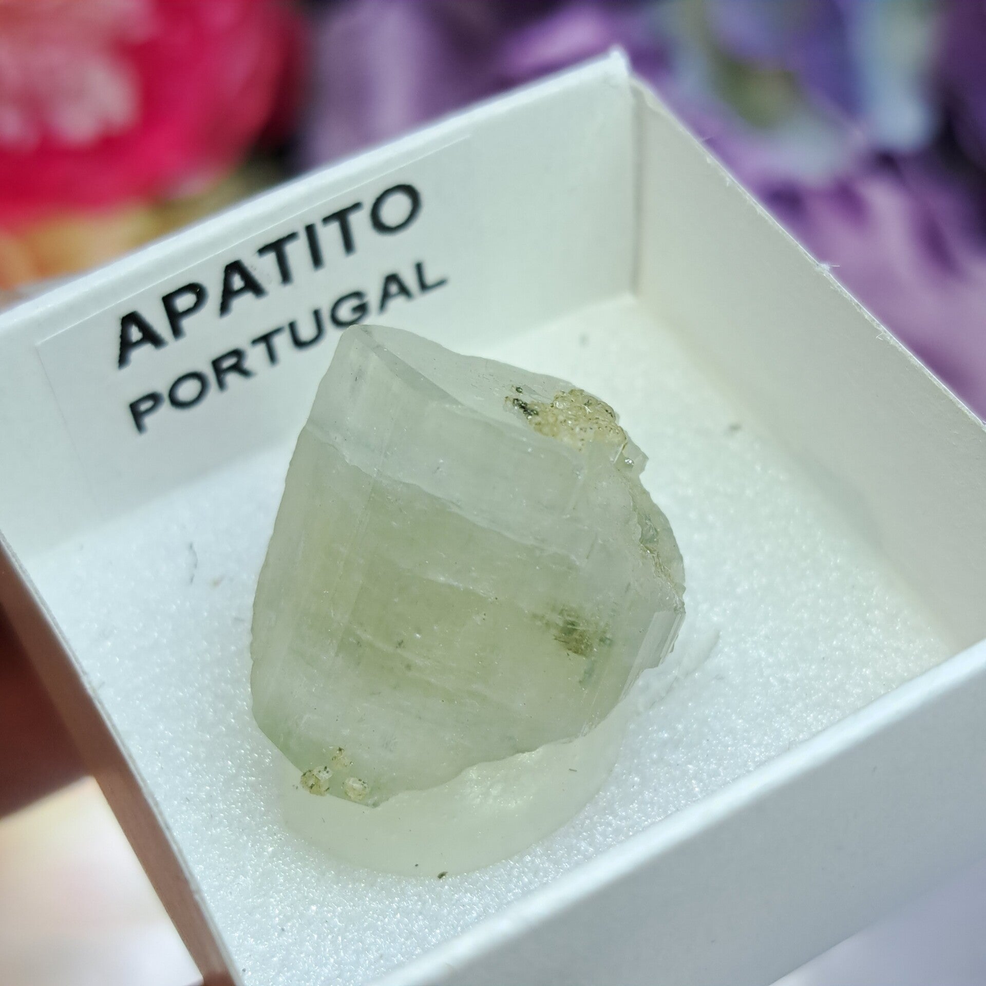 Wat een toffe ruwe clustertjes! Dit groene apatiet kristal cluster komt uit de Panasqueira Mijn in Portugal en komt inclusief het kartonnen verzameldoosje (4x4cm).