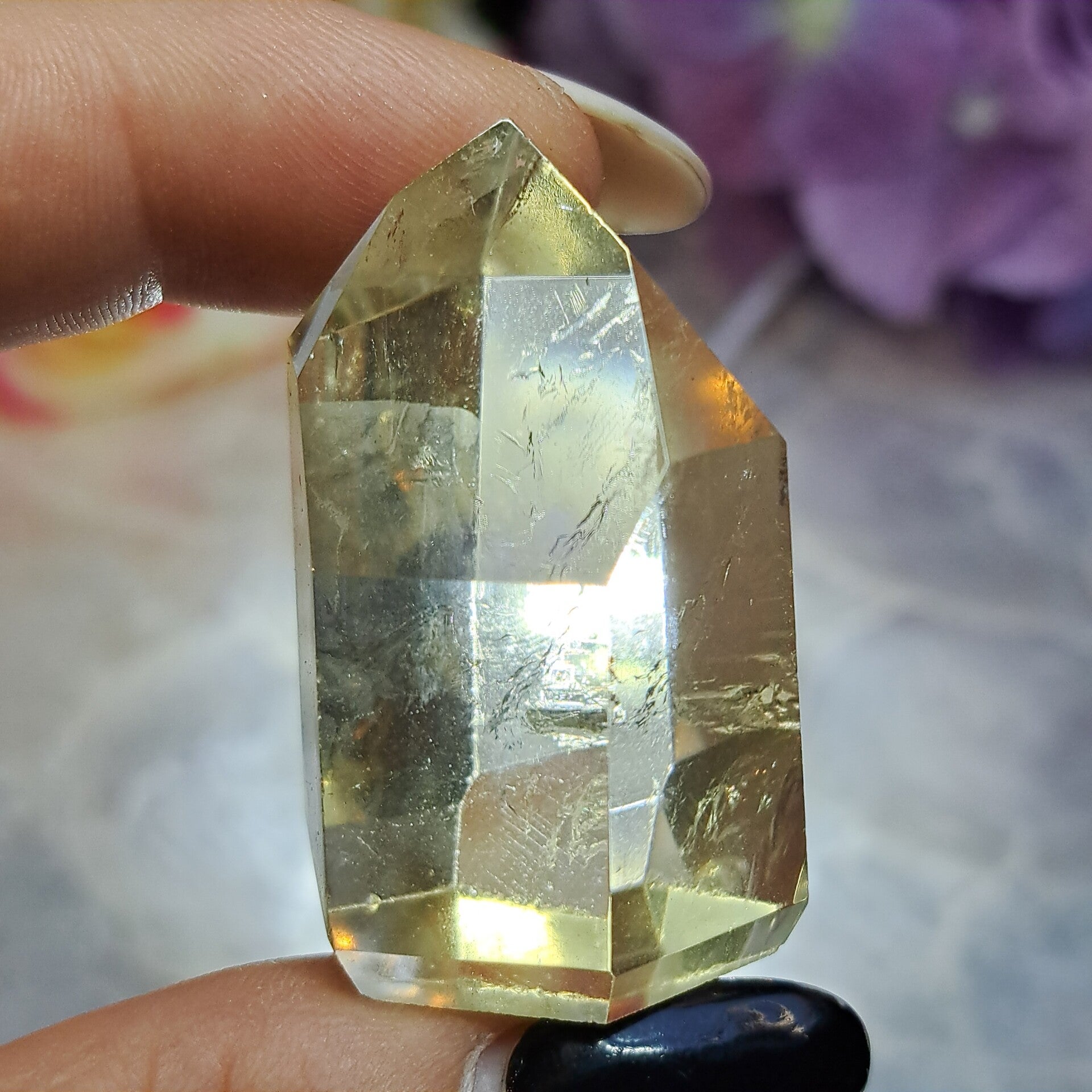 Mega hoge kwaliteit Citrien in punt vorm uit Aracai, Minas Gerais Brazilie. Prachtig helder van kleur en volledig natuurlijk, dus niet bewerkt, verhit of gekleurd!