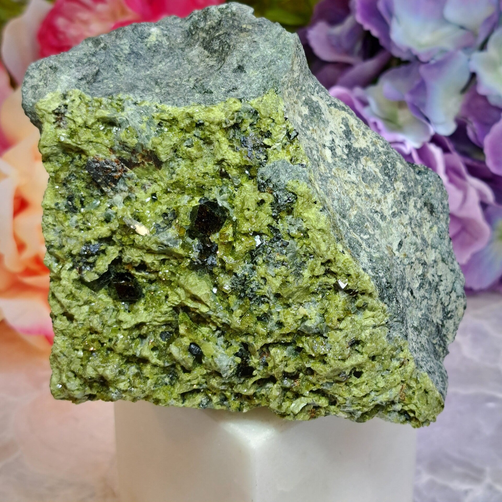 Gemijnd in Balochistan Pakistan en dit gave stuk heeft ook een combinatie met Diopsiet en Epidoot.