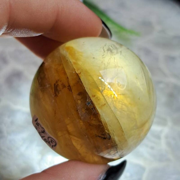 Deze mooie heldere bol is 148 gram en 5,3 cm groot.