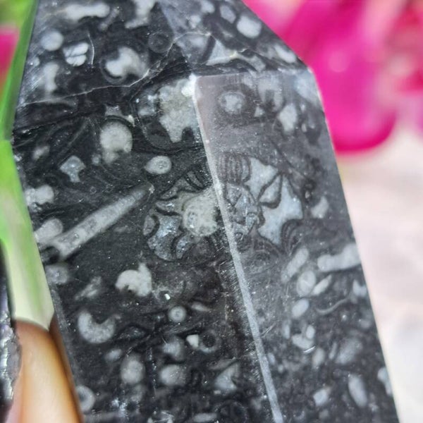 Crinoid fossiel heeft het vermogen om negatieve energie te transmuteren en karma uit het verleden los te laten, wat een vrediger en evenwichtiger bestaan bevordert. Haar diepbruine of zwarte kleur staat voor stabiliteit en aardende eigenschappen. Als een van de vroegste levensvormen op aarde symboliseert de Crinoid Fossil schoonheid en tederheid en herinnert het aan de onderlinge verbondenheid van alle levende wezens.
