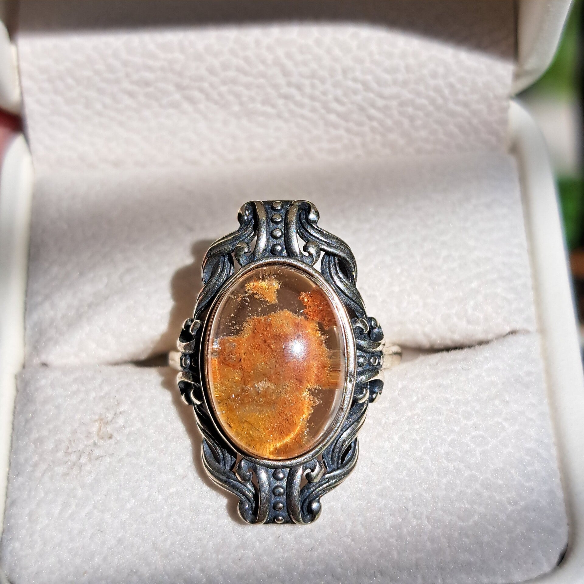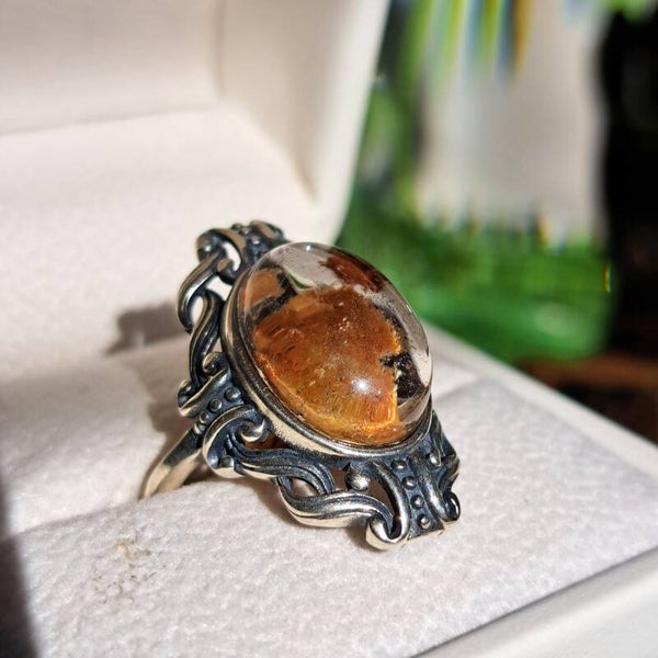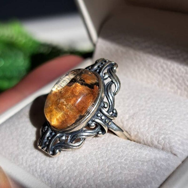 Deze gave S925 zilveren ring met een lodoliet mooie zandkleurige insluiting is verstelbaar van maat 17 tot maat 18,5.
