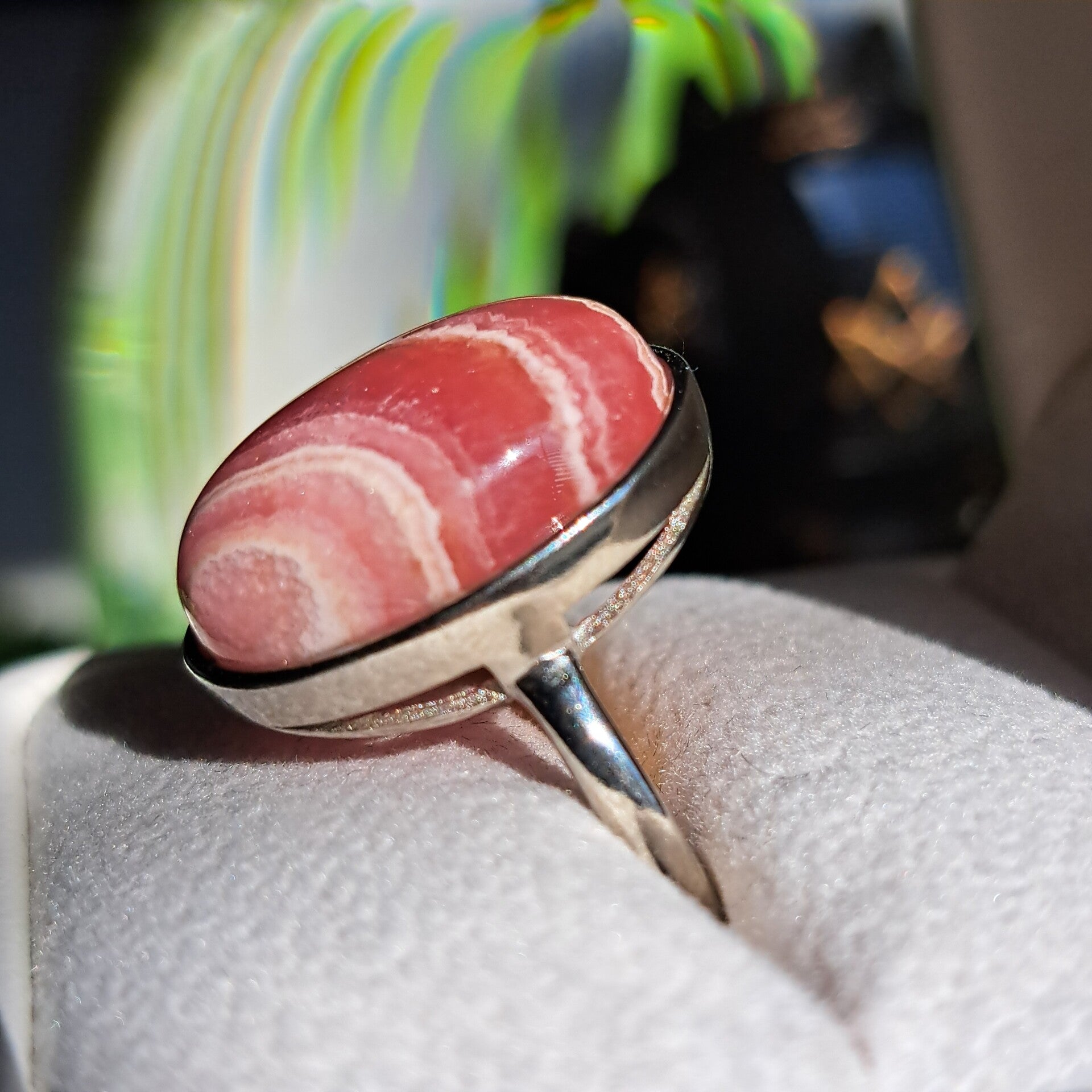 Rhodochrosiet is een mangaan carbonaat en krijgt de mooie roze kleur door de mangaan en hebben vaak de mooiste lijnenpatronen.