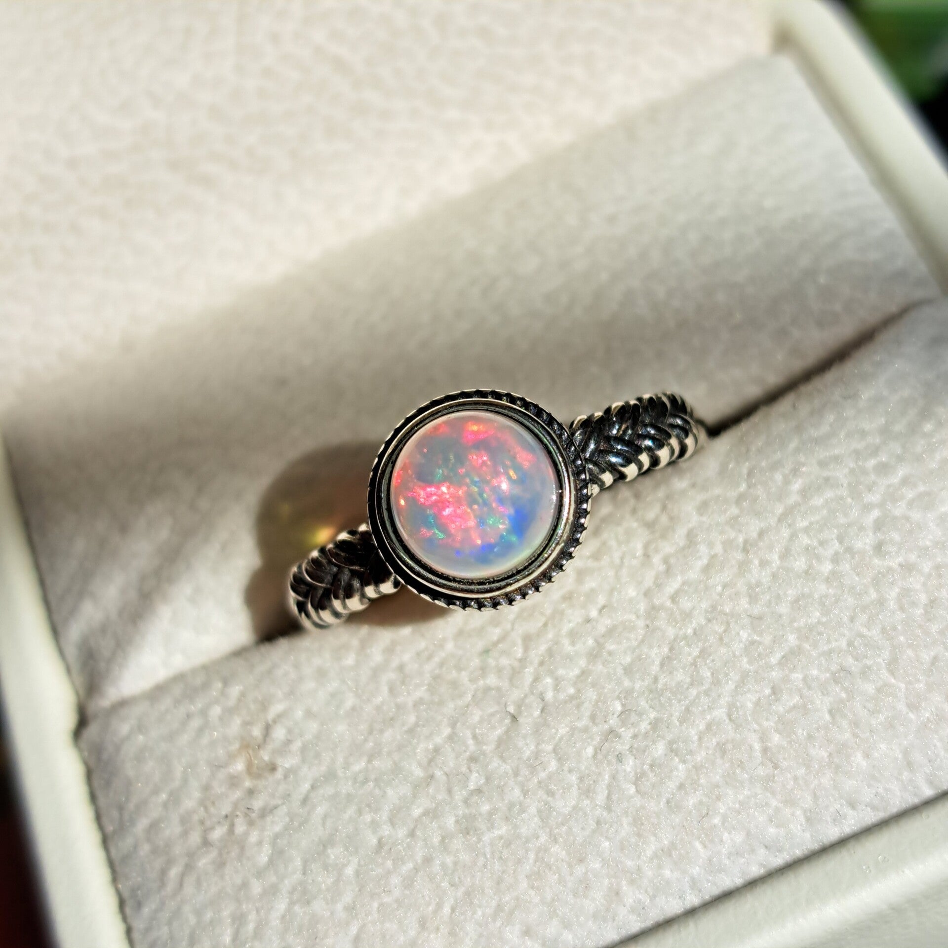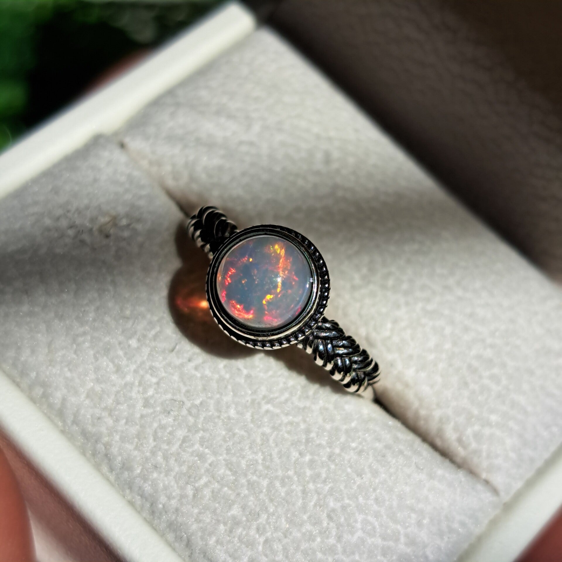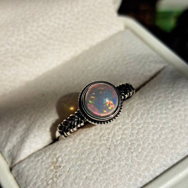 En kijk nou, dat kan toch ook niet anders? Prachtige kleurschakeringen in deze ring van Welo Opaal.