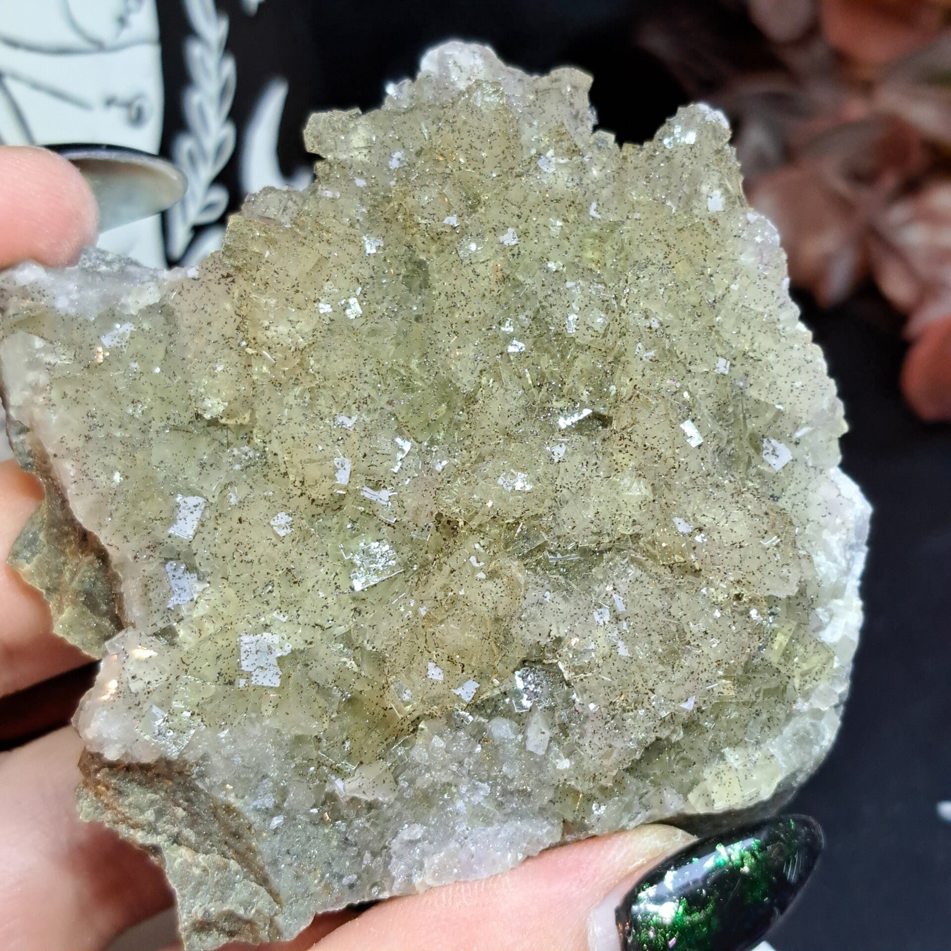 Fluoriet beschermd, reinigt en stabiliseert. Ze absorbeert negatieve energie uit je energieveld en beschermt hierdoor tegen bijvoorbeeld straling. Daarnaast maakt het je aura vrij van energetische lijntjes met mensen die niet goed voor je zijn.