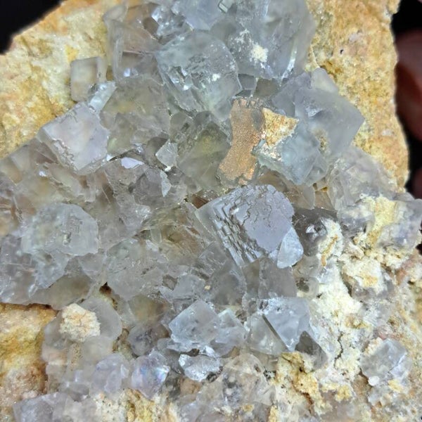 De fluoriet uit deze mijn staat bekend om haar transparante fluorietkristallen met combinaties van kubus en dodecaëde, meestal in lichtgroen tot lichtpaars van kleur op een matrix van (drusy) kwarts.