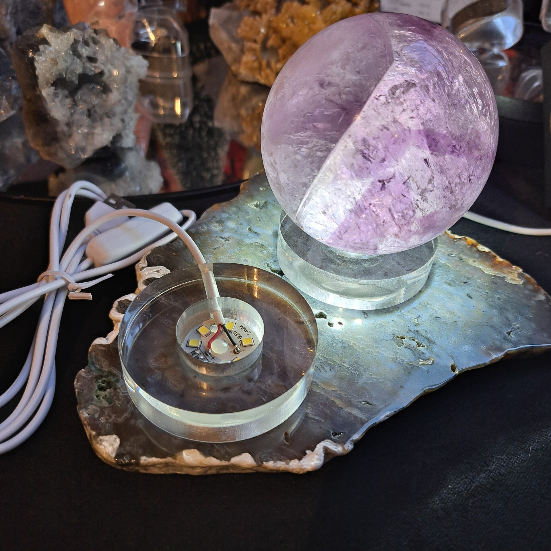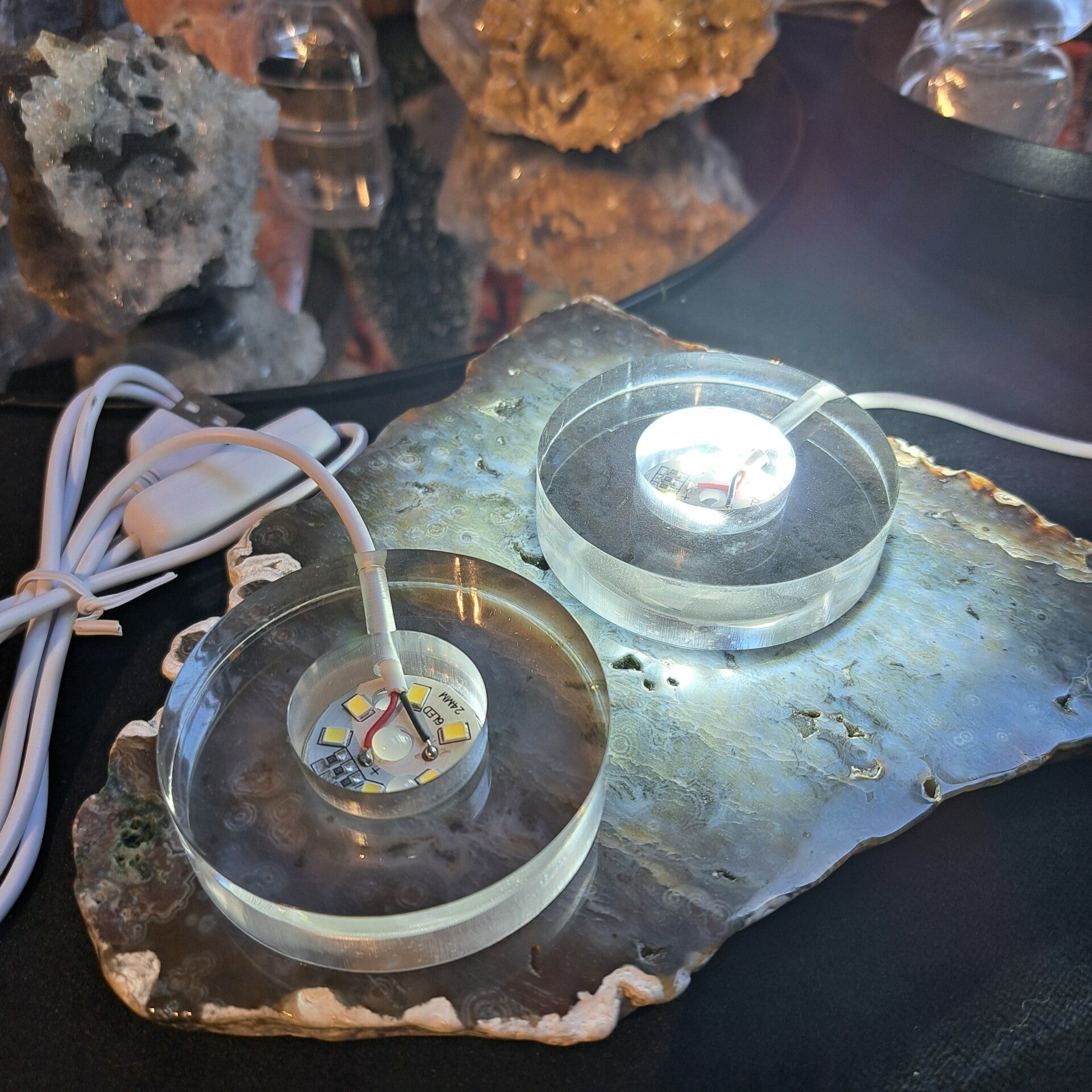Heel mooi om doorschijnende mineralen en edelstenen op te zetten waardoor het licht er ontzettend mooi onder schijnt en je kristal nog meer in het middelpunt wordt gezet.