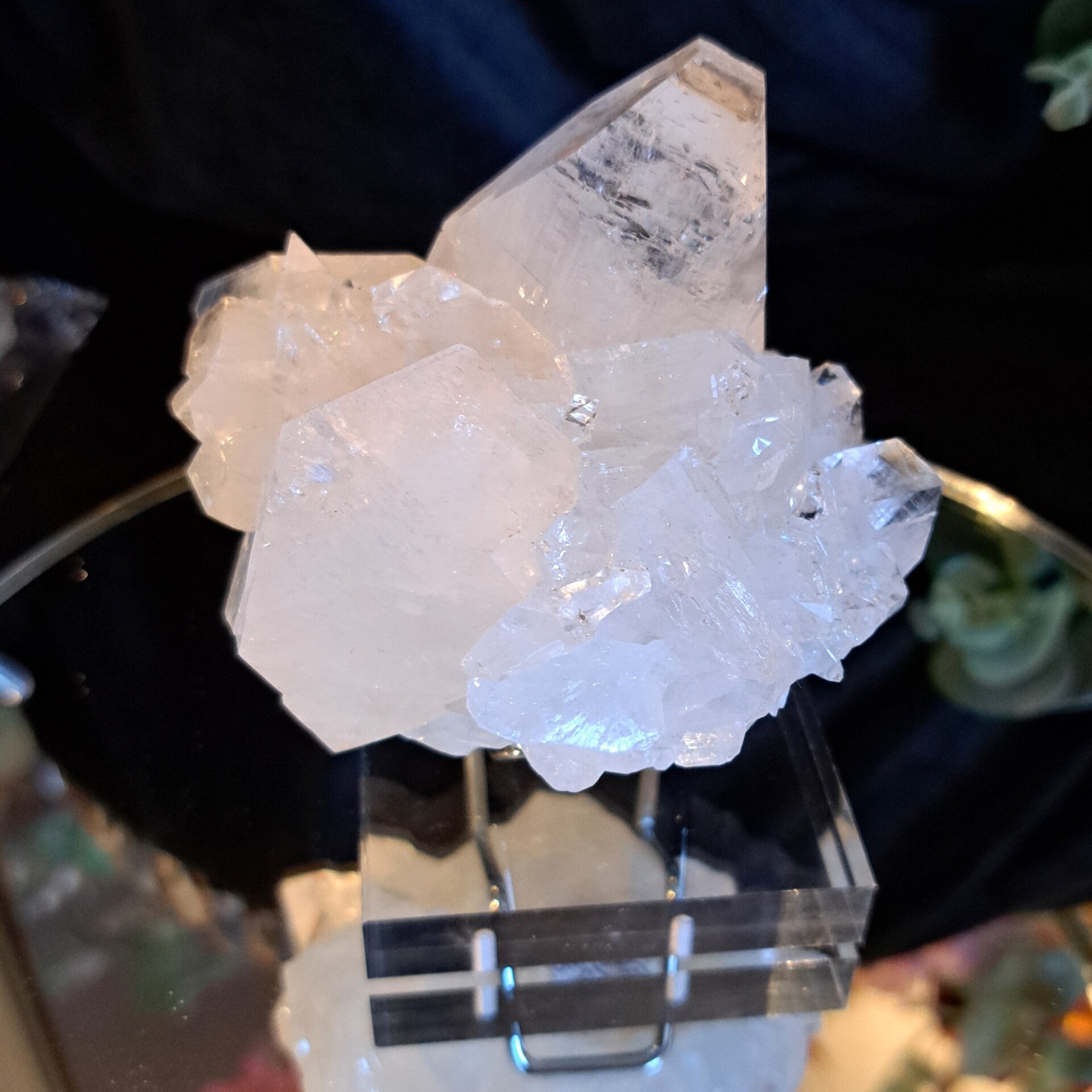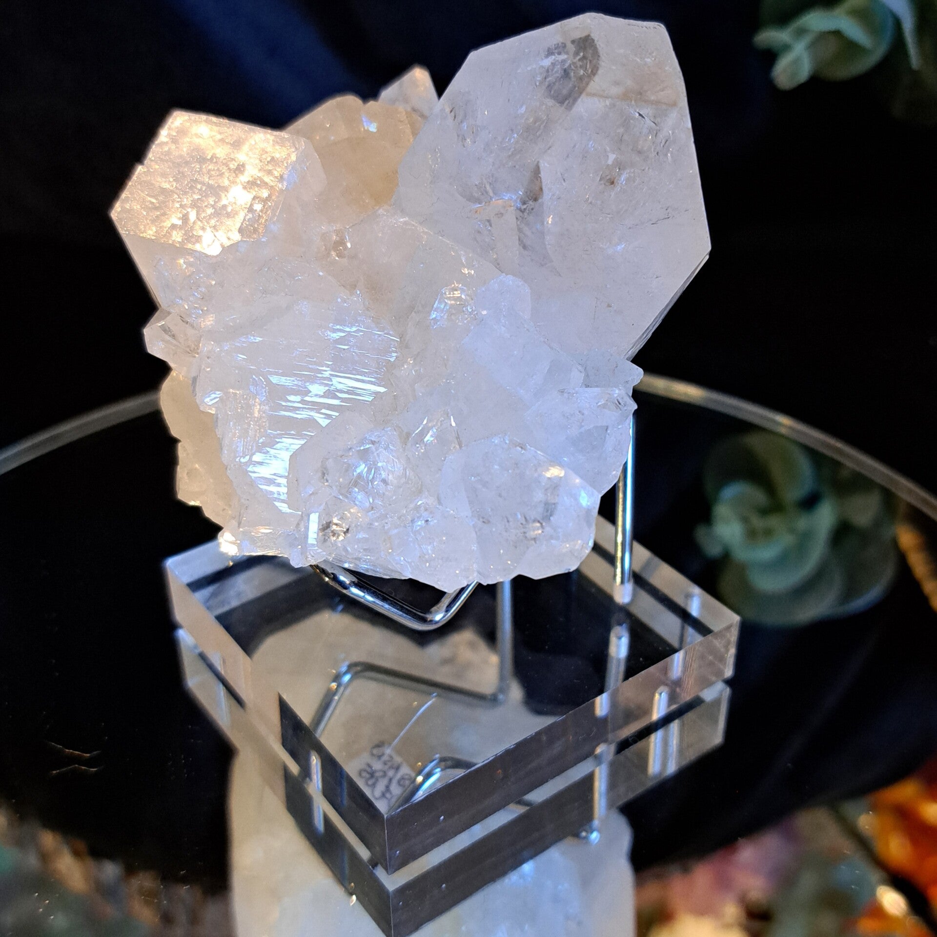 Mooie transparante houder met kunststof voetje en zilverkleurige houder voor een mooie, iets verhoogde display van je stukken.De houder heeft een voet van 6x6 cm en is totaal 4,5cm hoog.