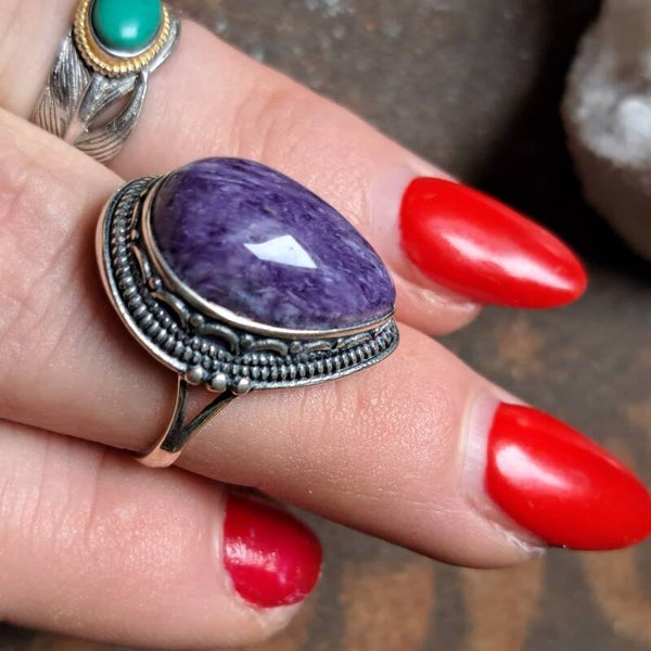Charoïet stimuleert innerlijke visioenen en spirituele inzichten en helpt je bij de verwerking van grote veranderingen op spiritueel niveau. Charoiet is een hele fijne ondersteuner bij het verwerken van oude trauma's en oude karmische stukjes. Magie, alchemie en oud priesterschap uit vorige levens kunnen met deze magische steen uitgewerkt en omgezet worden. Ze ondersteunt je op een magische manier bij spirituele groei en ontwikkeling.