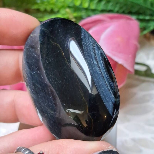 Deze toffe palmsteen met de typische chattoyance / flash is 6,4 cm groot.