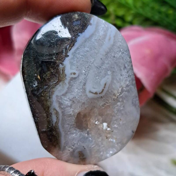 Mosagaat werkt aardend, stabiliserend en trekt succes, welvaart en voorspoed aan. Mosagaat is ook heel geschikt om bij je te dragen bij herstel na ziekte. Om tot rust te komen na onrust of om weer tot jezelf te komen.