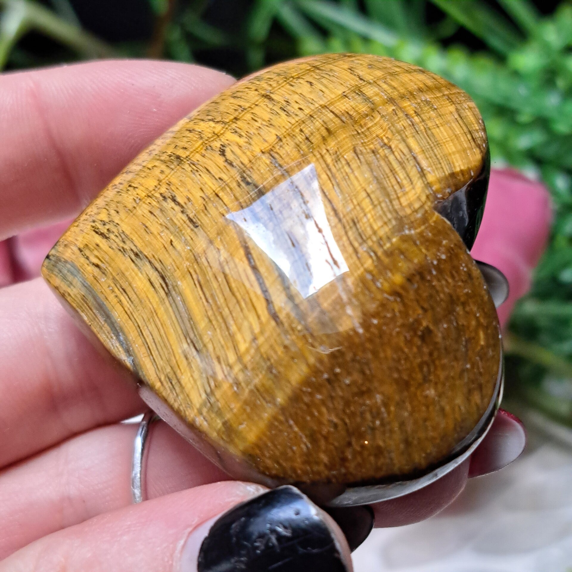 Tijgeroog is een kwarts type met insluitingen van amfibool waarbij door lichreflectie prachtige glans krijgt.
